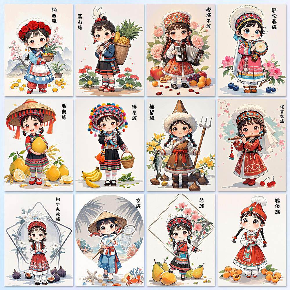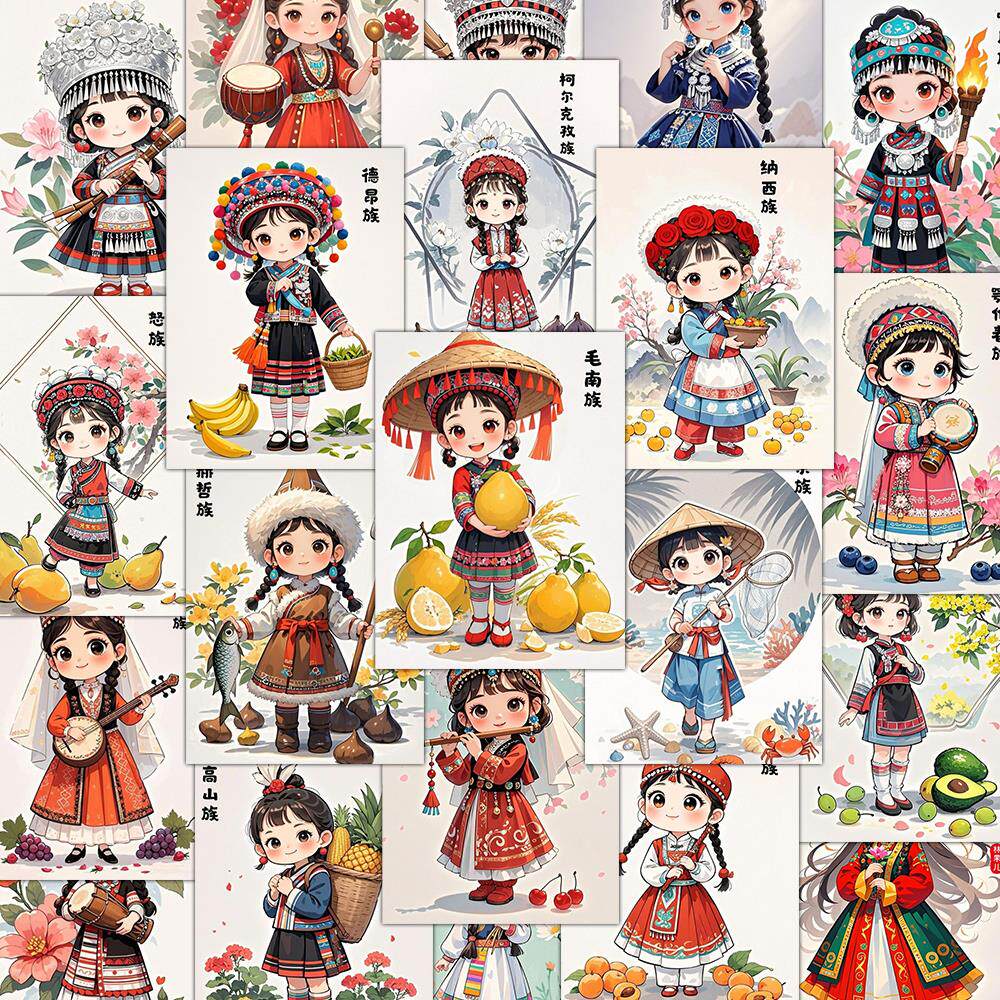 各民族服饰贴纸创意少数民族传统文化科普手账素材DIY笔记本贴画