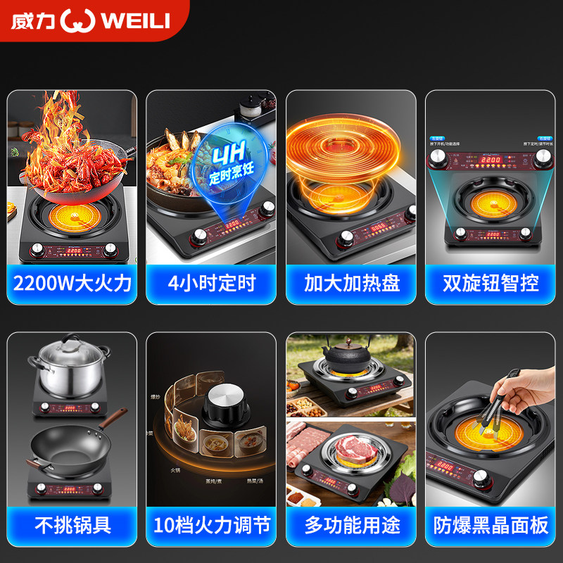 威力大功率凹面电陶炉家用火锅炒菜锅一体商用煮茶电火灶电磁炉