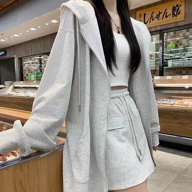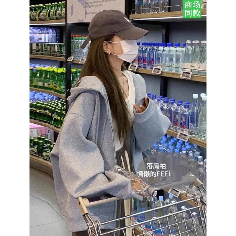 三福卫衣开衫2025新款秋季连帽情侣款外套宽松慵懒风灰色上衣女装