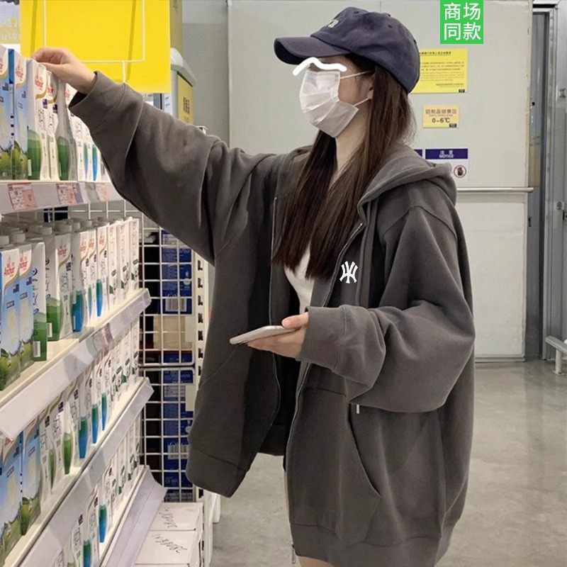 【一折专区】正品纯棉开衫卫衣女情侣连帽春秋宽松百搭慵懒男外套