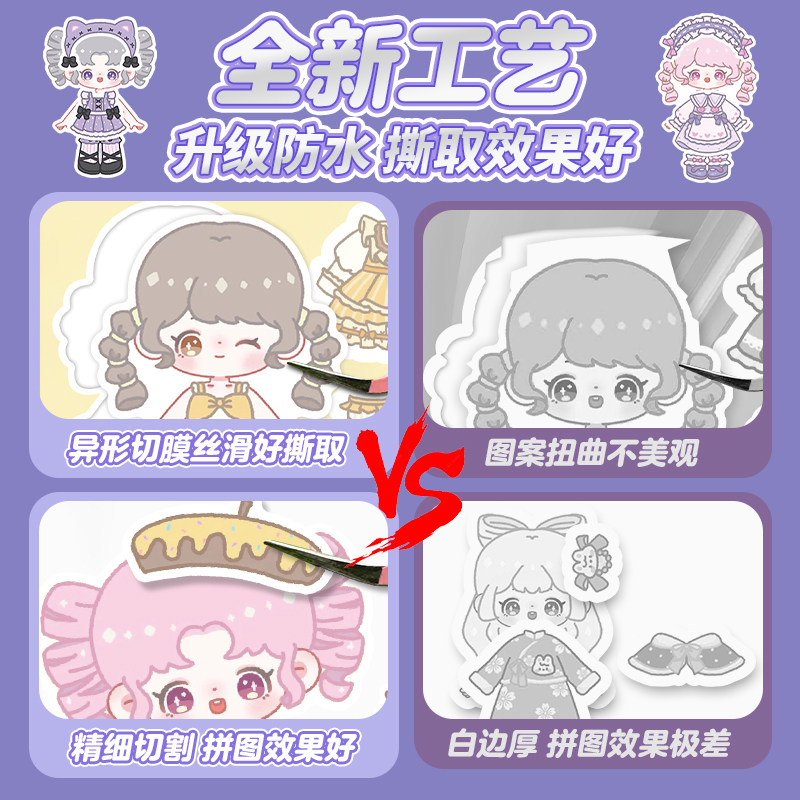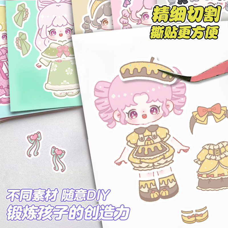 萌崽新款学霸学渣果冻贴纸安静书儿童免裁剪手工粘贴DIY女孩趣味玩具