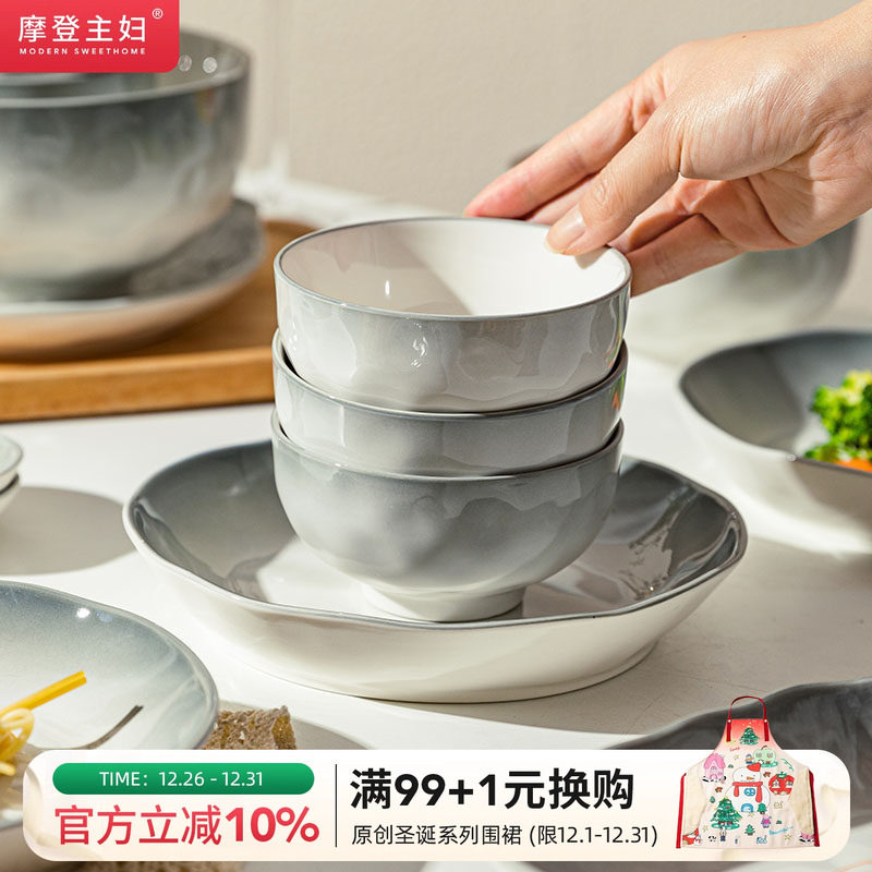 摩登主妇烟雨遥餐具釉下彩饭碗碟家用2025新款汤碗高级感盘子菜盘