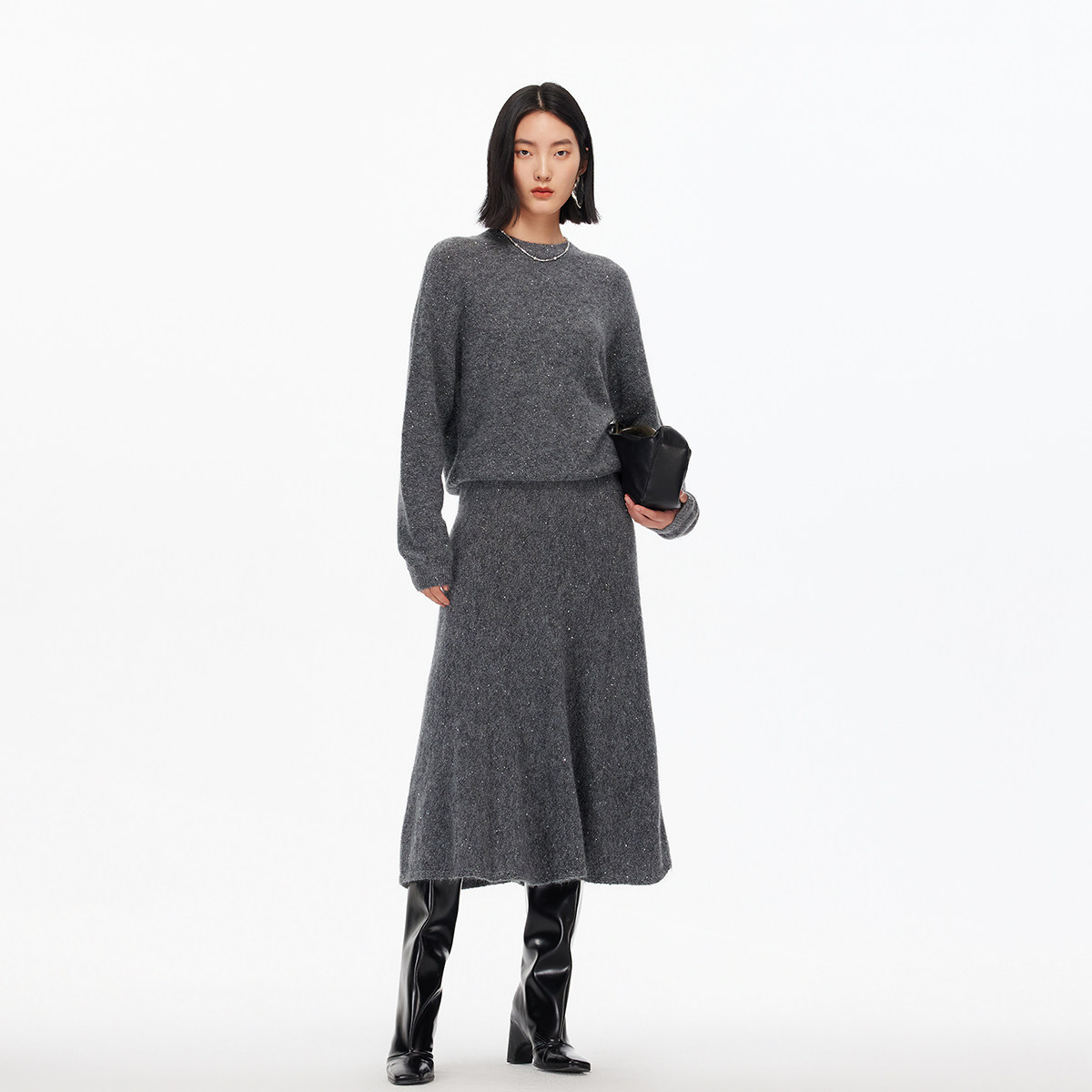 Vero Moda半身裙2025冬季新款含绵羊毛马海毛A字中长裙32541J002