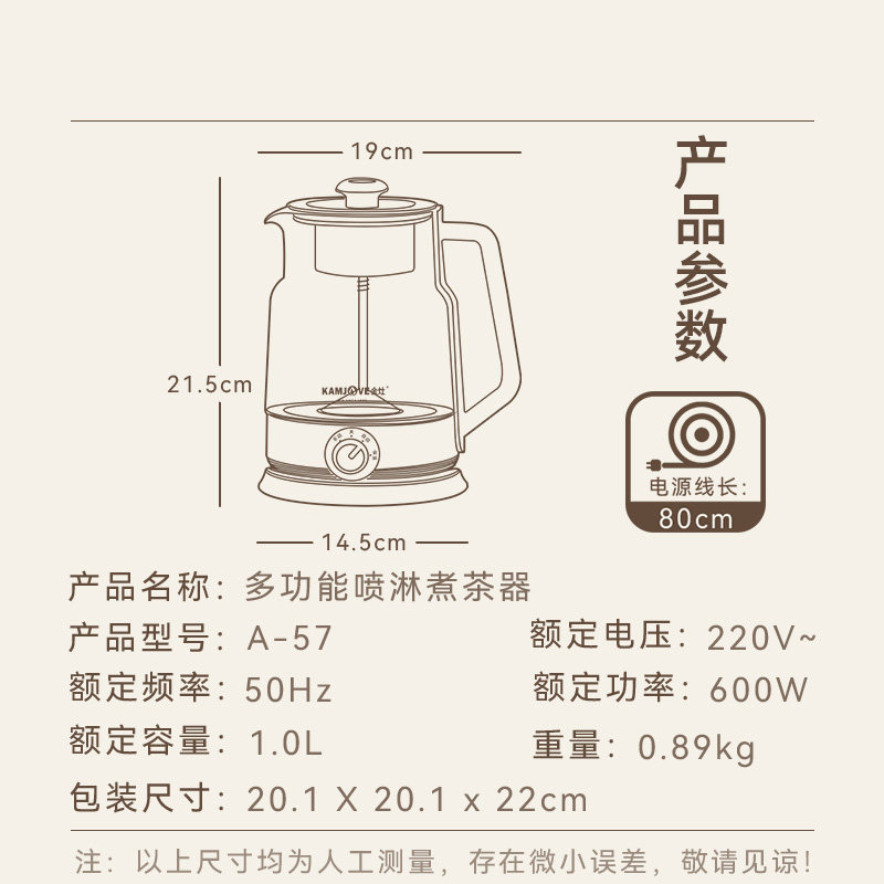 金灶A-57蒸汽煮茶壶新款办公室小型电热水壶家用玻璃养生小茶炉