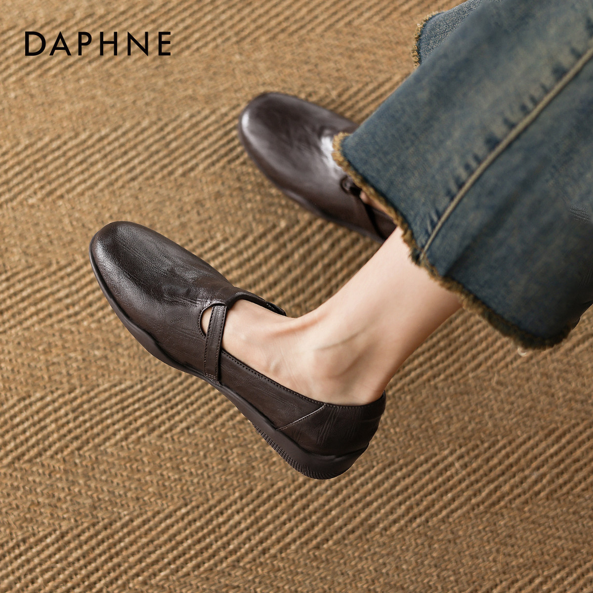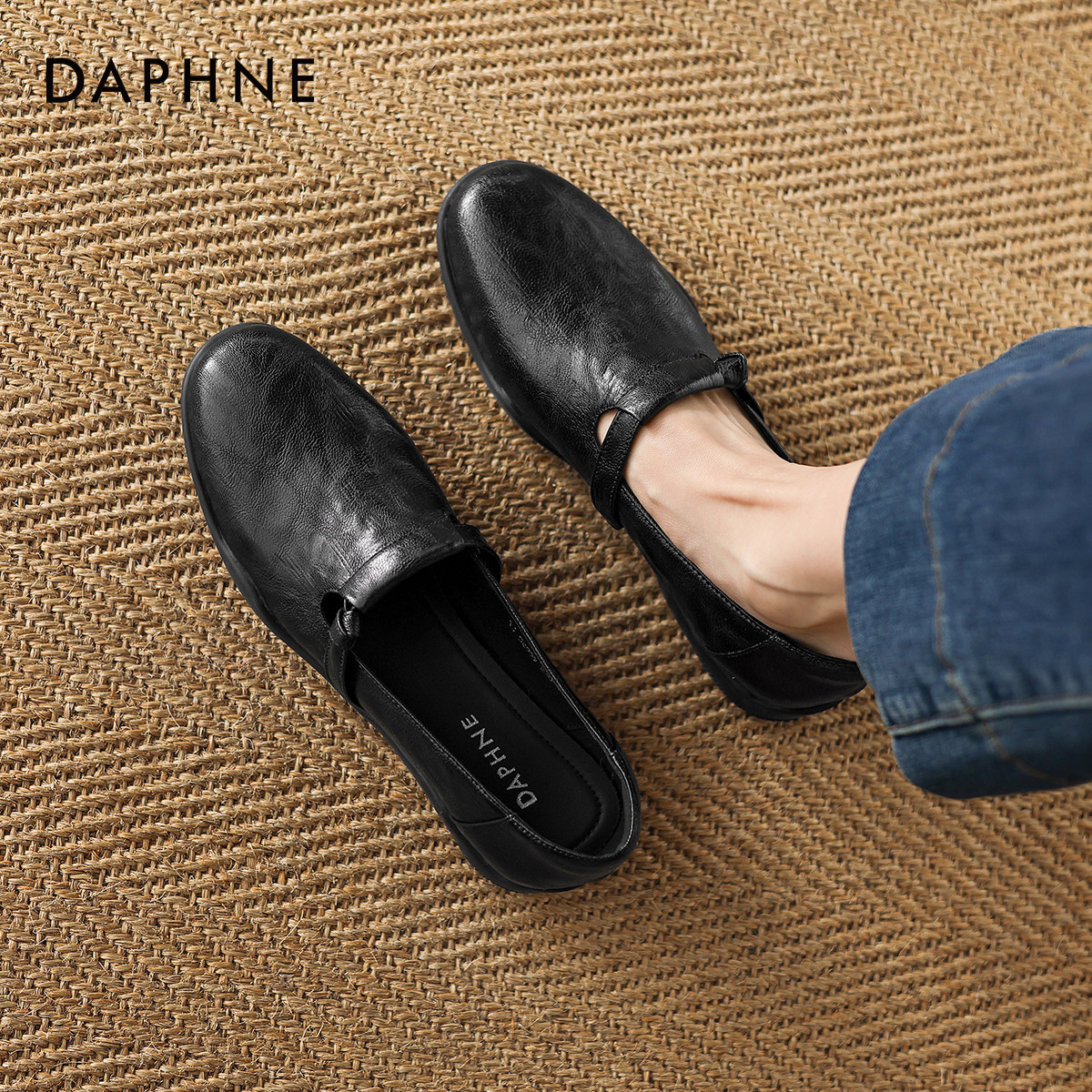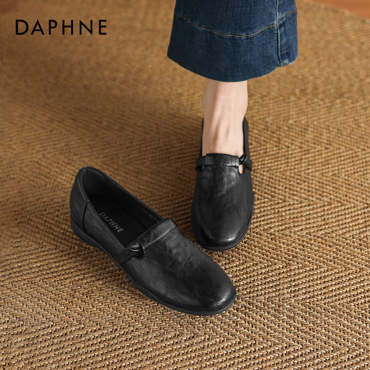 达芙妮复古小皮鞋乐福鞋女2026新款平底通勤单鞋一脚蹬软底妈妈鞋