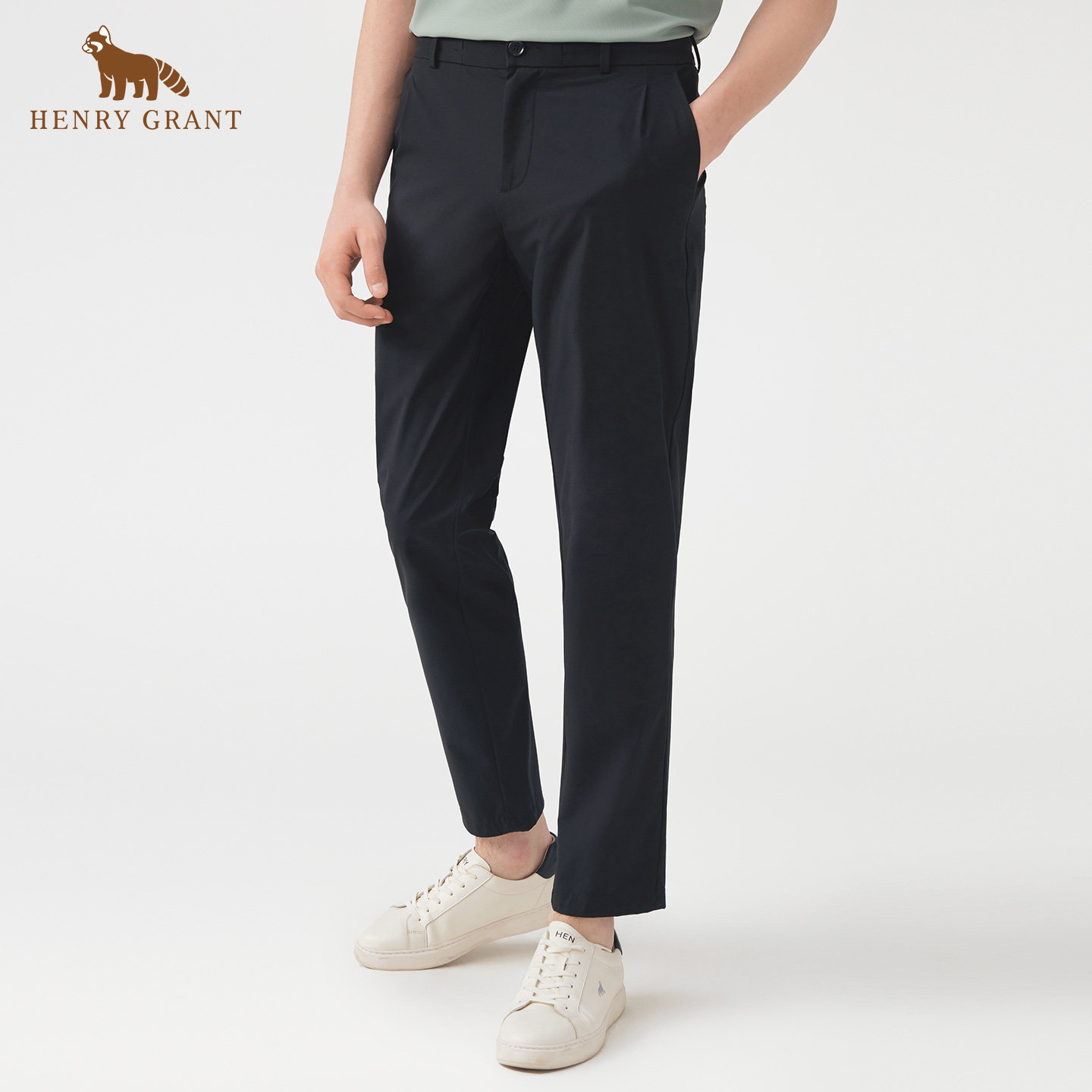 【蚕丝混纺】亨利格兰黑色九分裤2026年春季新款潮流休闲裤小脚裤