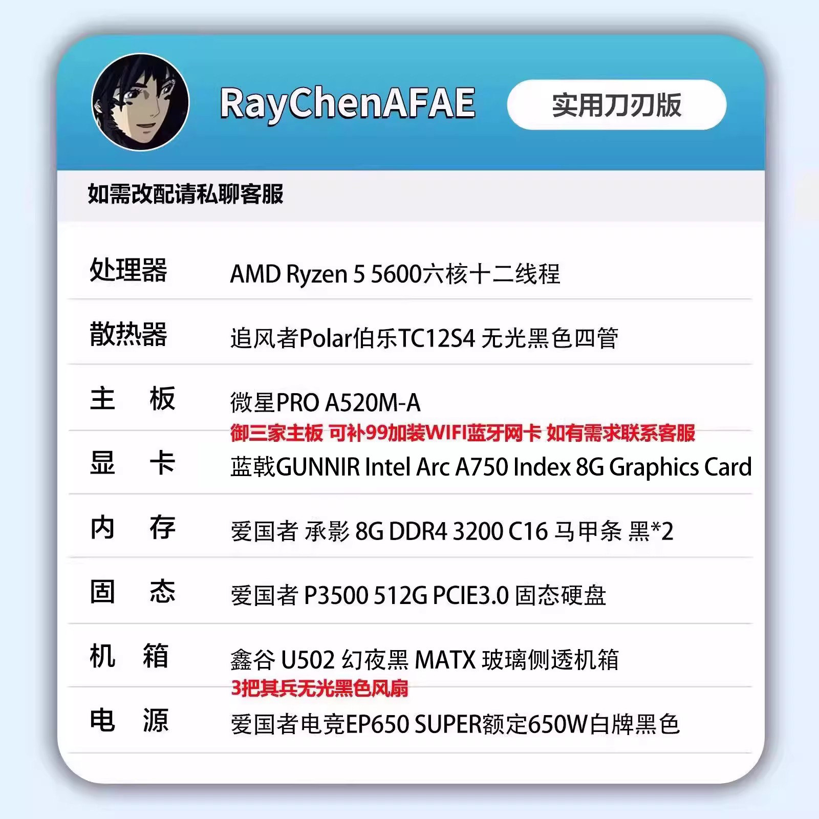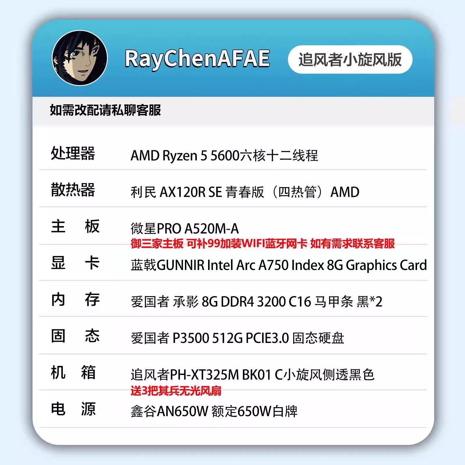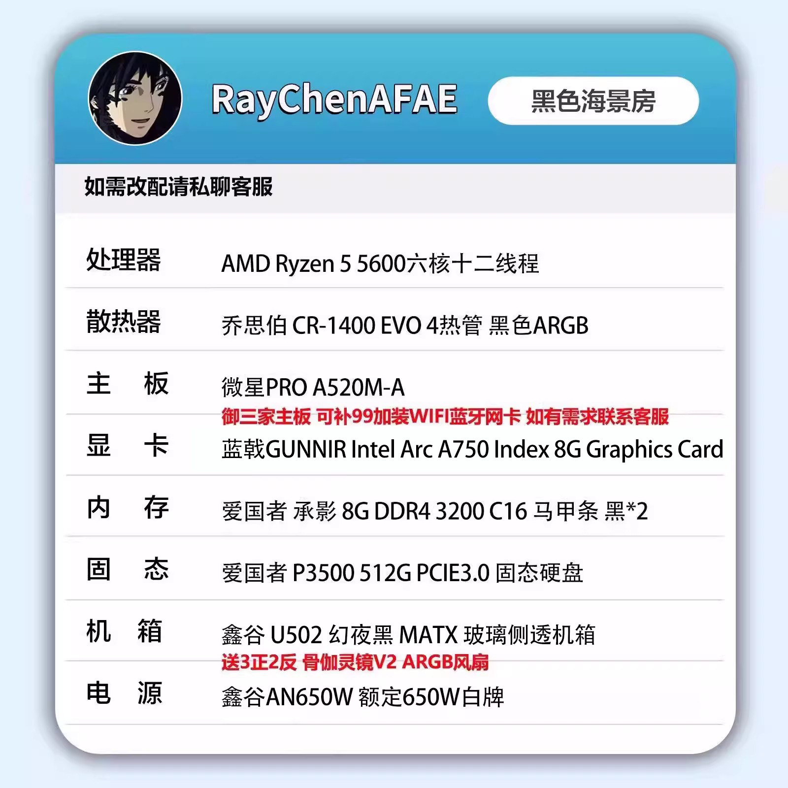 Intel Arc A750+5600高颜值海景房高性能DIY游戏生产力电脑主机