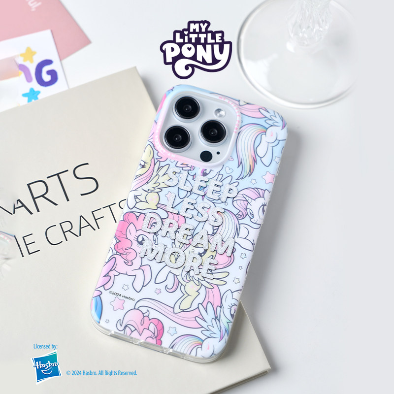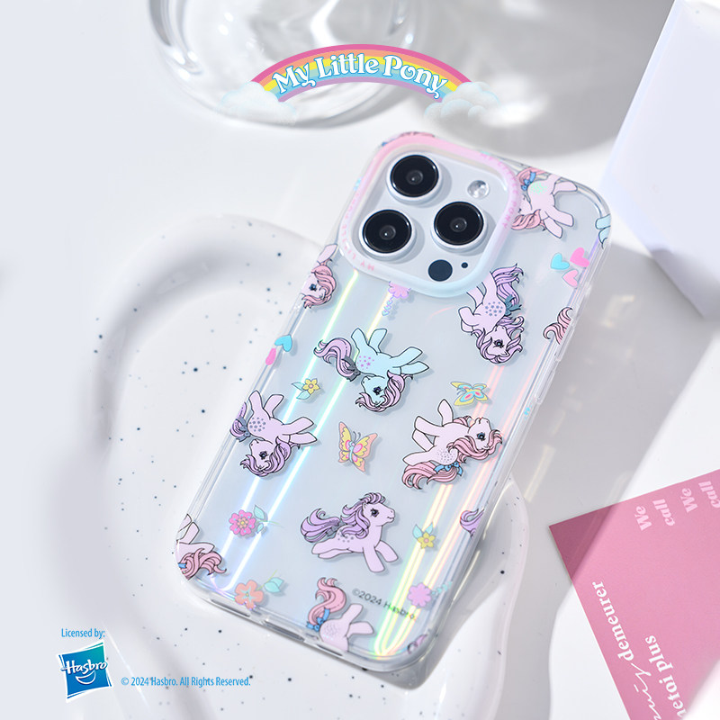 小马宝莉适用苹果15promax新款手机壳镭射透明男15pro防摔硬壳14promax官方正品iPhone15全包保护套ins卡通女