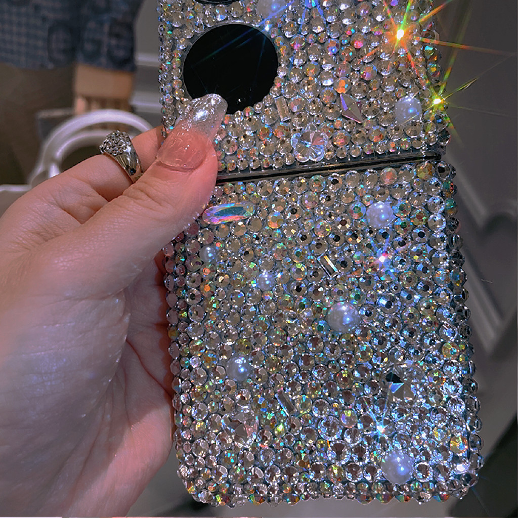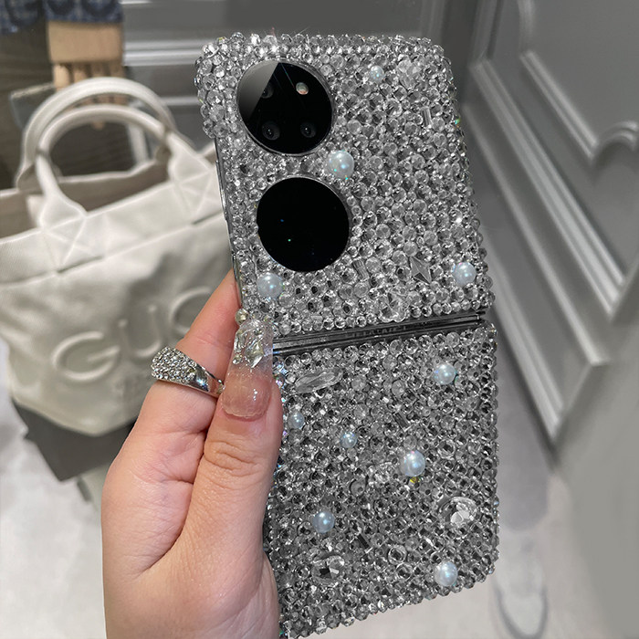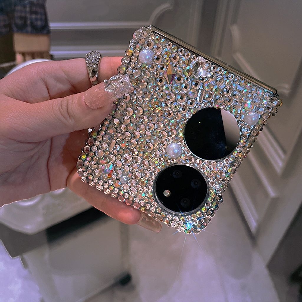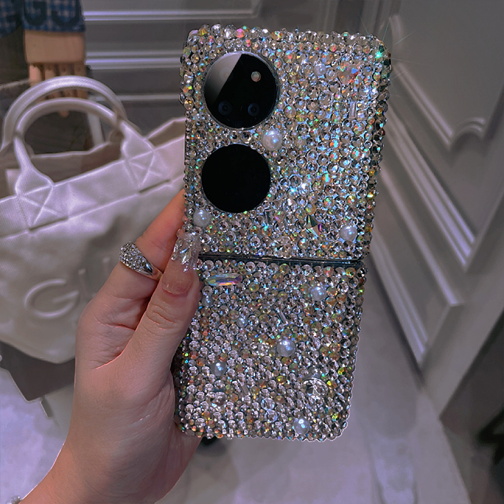 适用华为Pocket2手机壳水钻purax奢华新款女款p50pockets折叠保护套定制diy高级质感透明全包防摔翻盖p60镭射