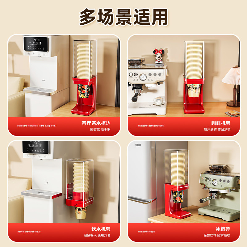 一次性杯子取杯器放纸杯桶杯架装水杯收纳储物盒防尘置物架子神器
