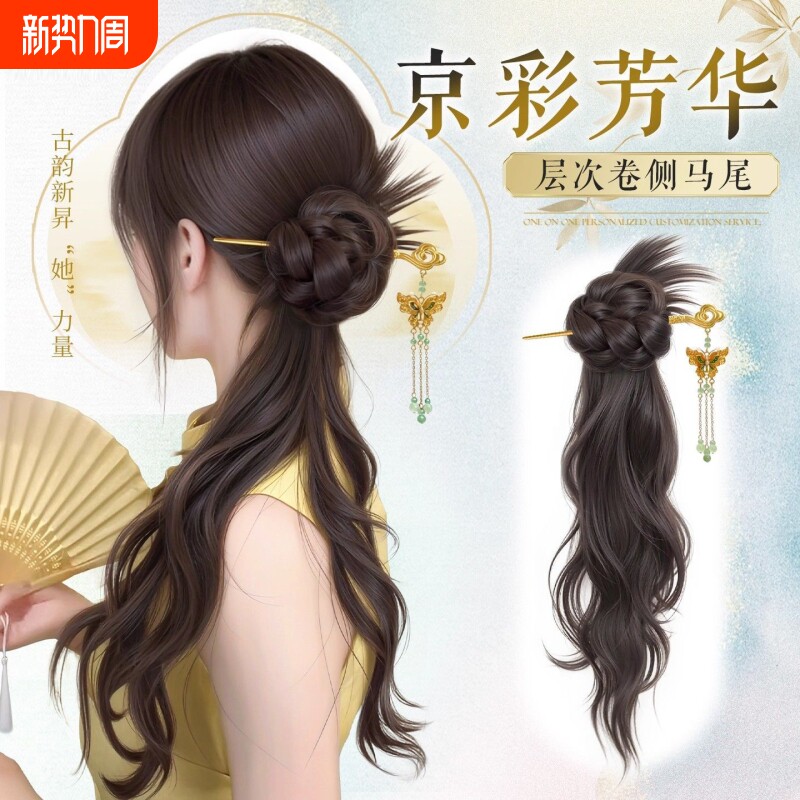 假发辫子女仿真发簪新中式长发侧边抓夹发饰古风汉服旗袍侧马尾辫