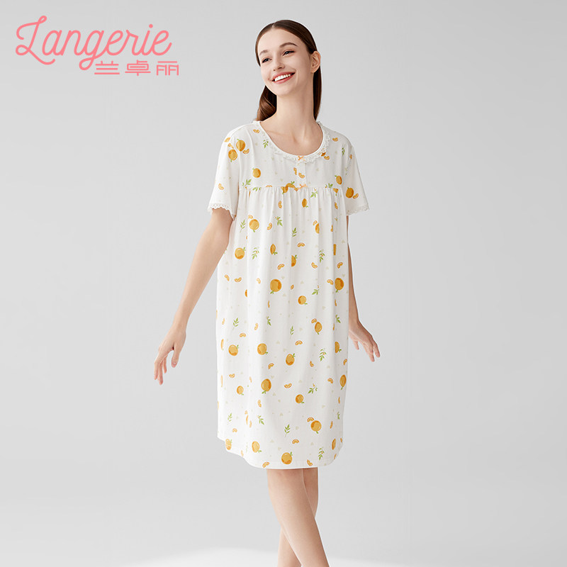 兰卓丽凉感睡裙女短袖宽松家居服柔软印花睡衣不易凸点可外穿夏季