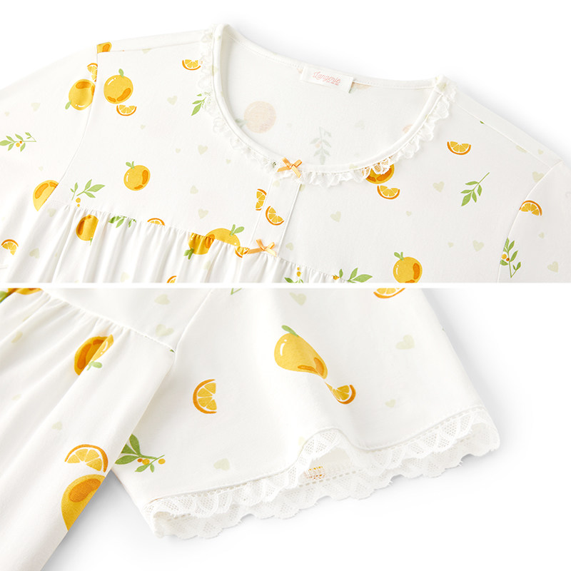 三福睡裙女款春夏季净雪花棉抗菌睡衣甜美印花宽松趣味短袖家居服