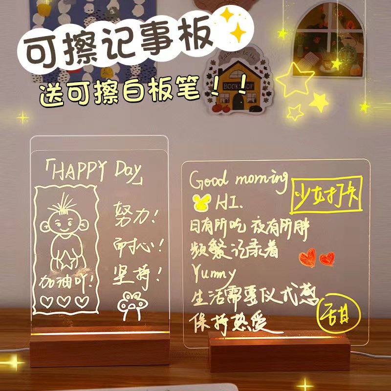 创意网红透明亚克力发光桌面日程提示留言板小白板办公室计划留言