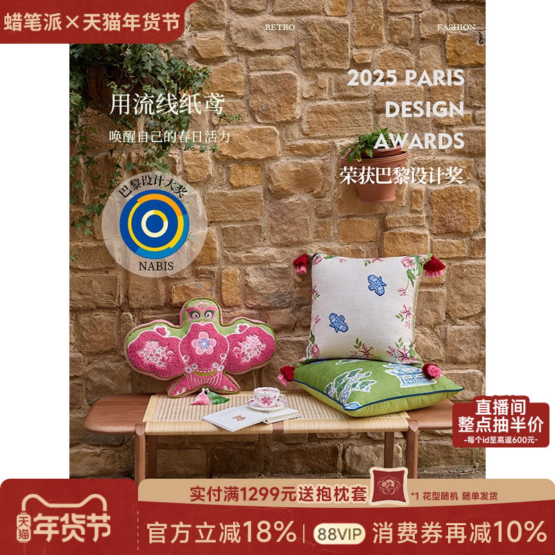蜡笔派「鸢影系列」纸鸢抱枕法式复古客厅沙发靠垫卧室睡觉夹腿