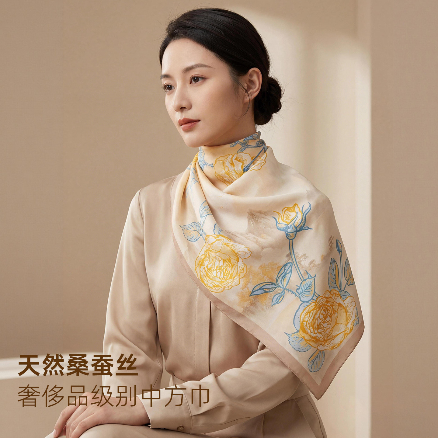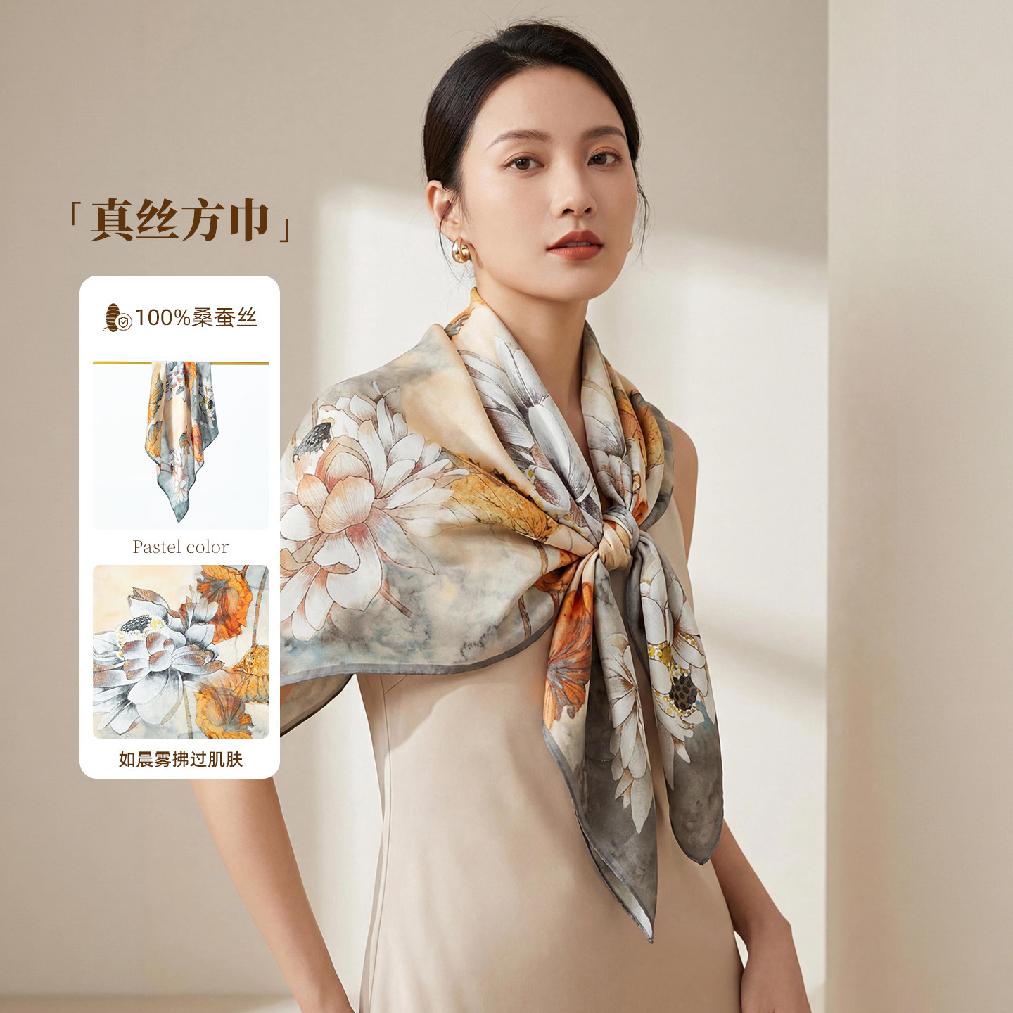 2026新款桑蚕丝印花真丝中方巾女丝巾系脖领巾围巾百搭披肩礼品