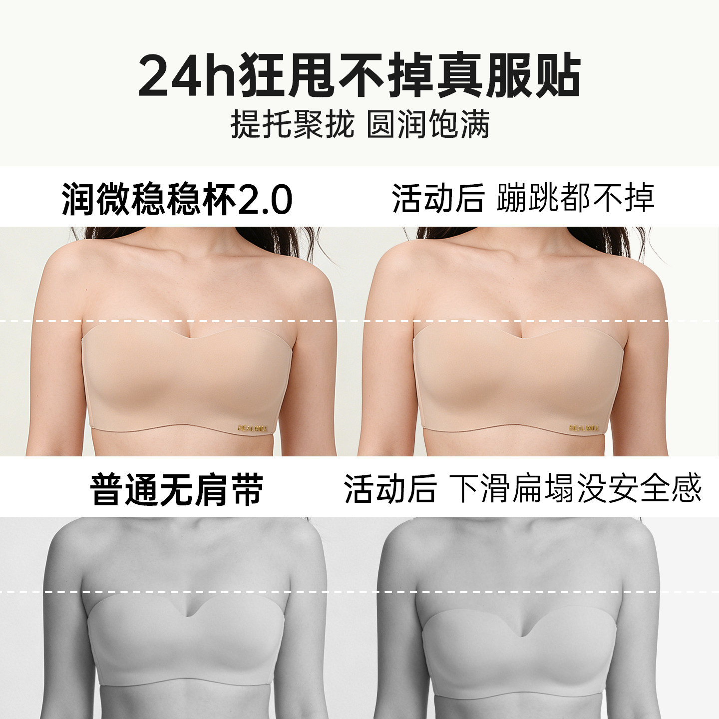 润微稳稳杯无肩带内衣女大胸美背夏防滑隐形抹胸裹胸无痕聚拢文胸