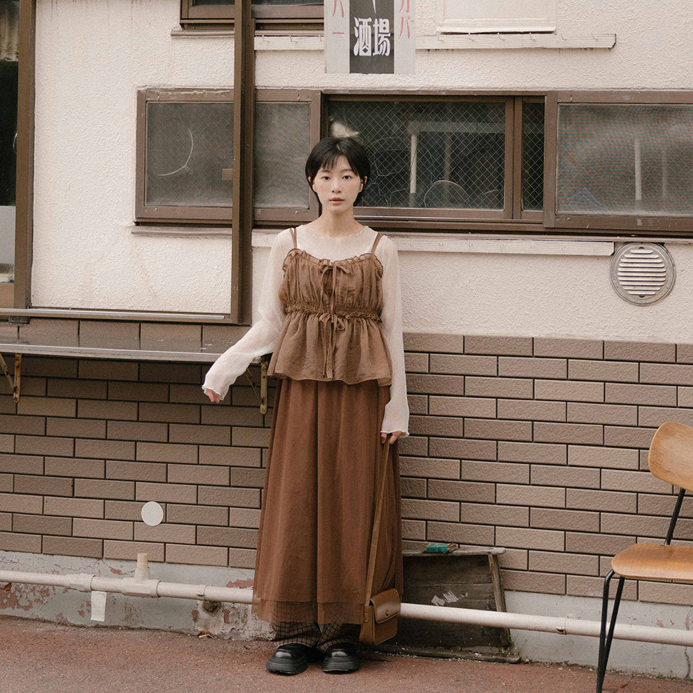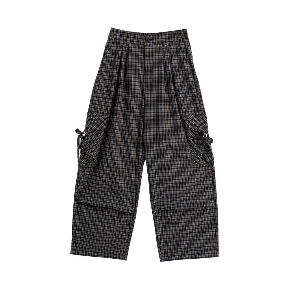 QUEENSHOP 2025秋冬新品女装格纹绑带口袋造型直筒长裤04101986