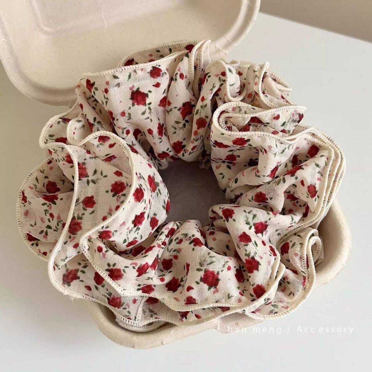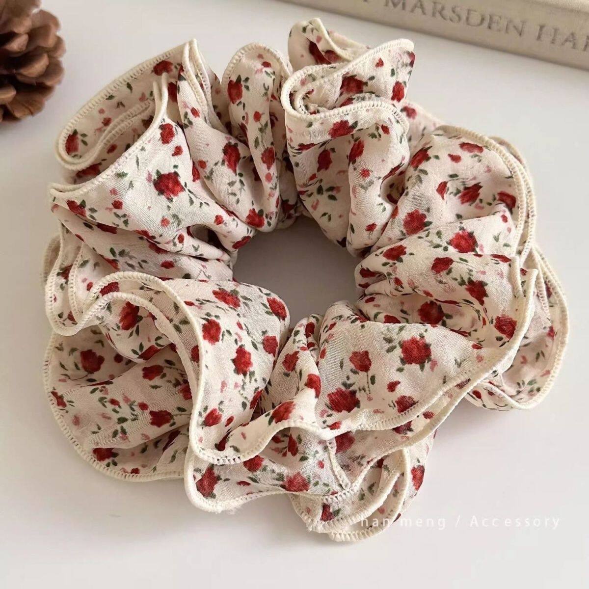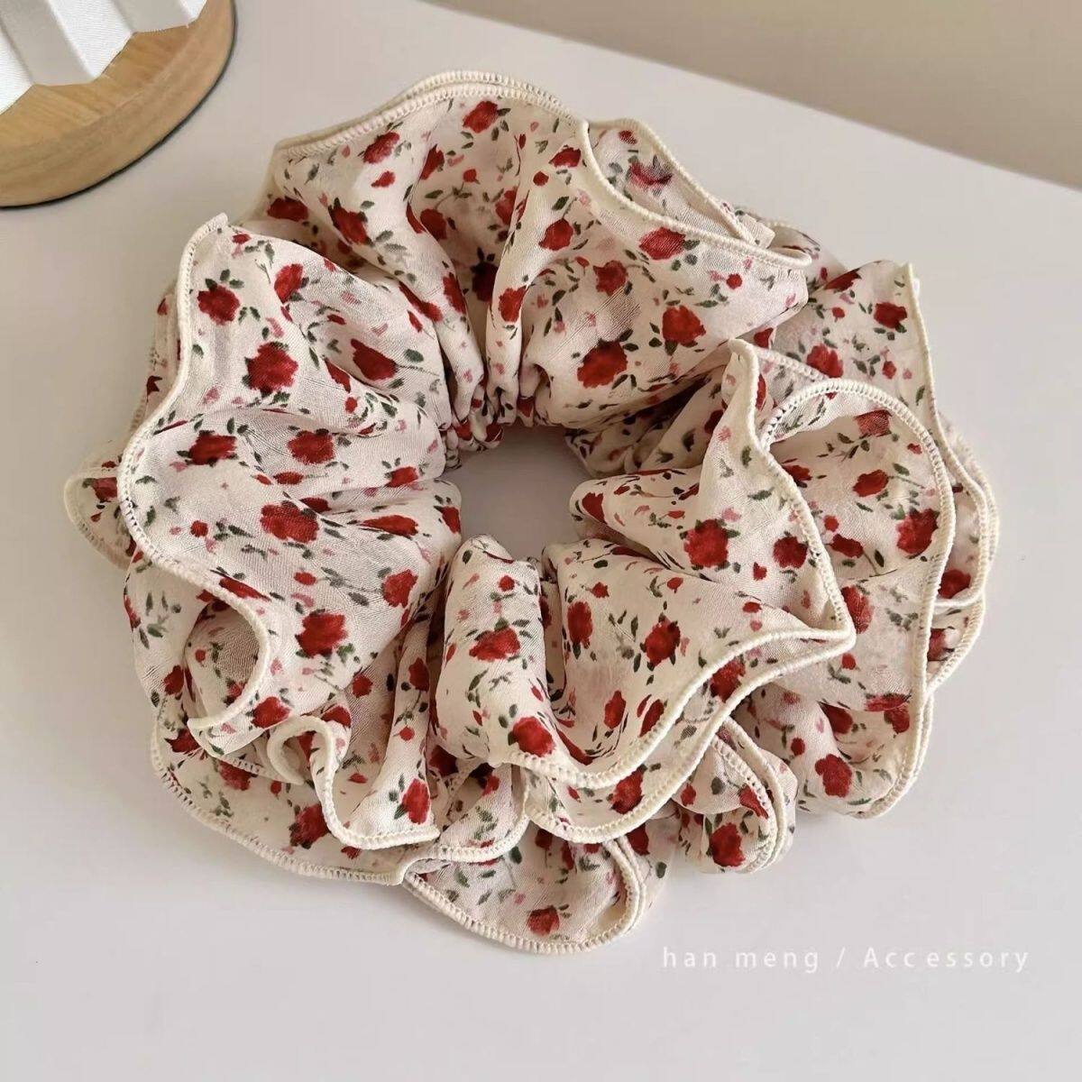 复古碎花布艺大肠发圈少女高级感丸子头花朵发绳时尚头绳发饰波点