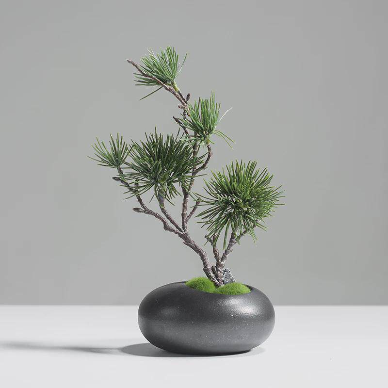 中式仿真迎客松小盆景摆件套装陶瓷花瓶植物客厅桌面装饰假花松树