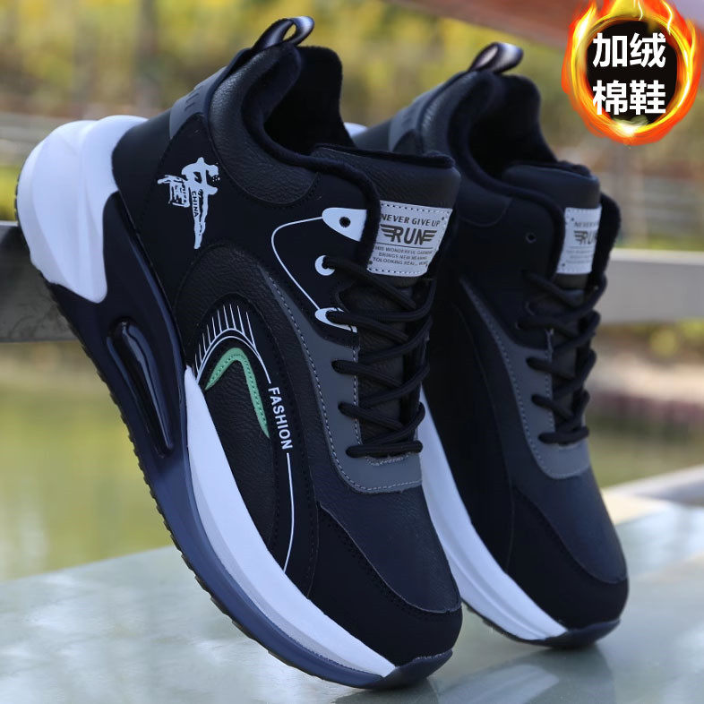 啄木鸟冬季男鞋2025新款加绒加厚运动鞋潮流百搭厚底防滑休闲鞋男