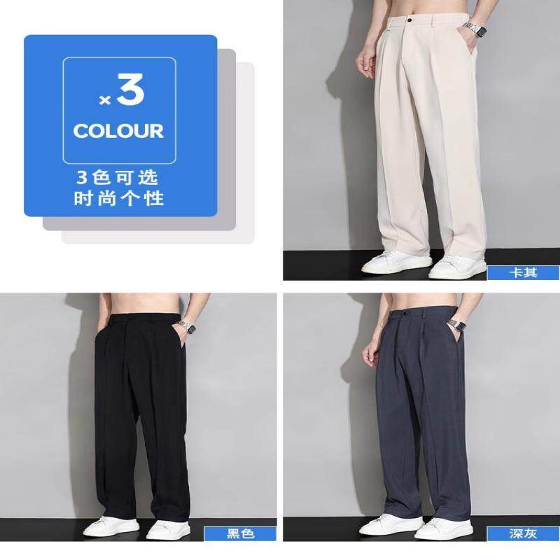 啄木鸟冰丝裤子男士夏季商务薄款垂感伴郎西裤直筒宽松休闲长速干