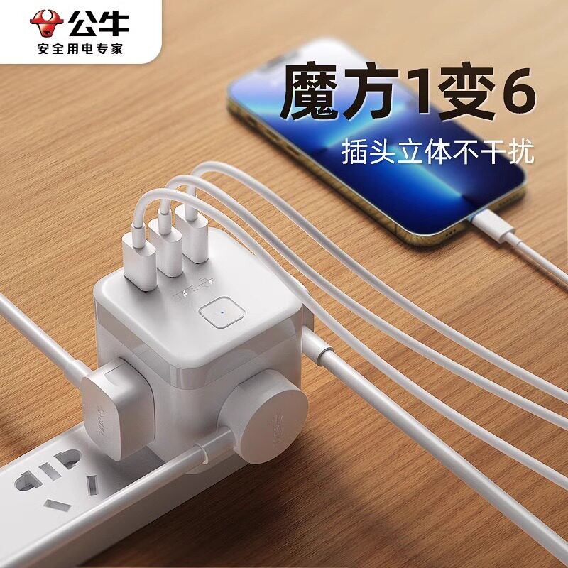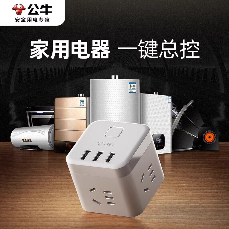 公牛魔方插座USB排插插线板多功能插座头转换宿器舍官方旗舰正品