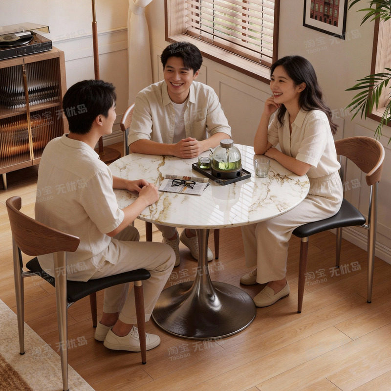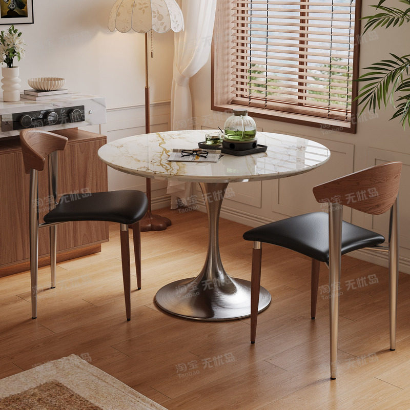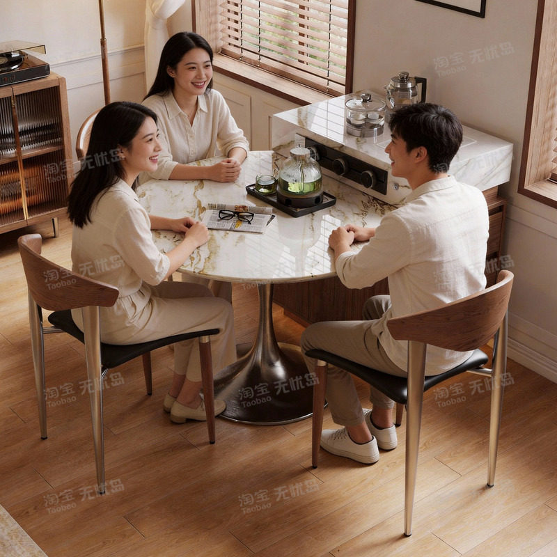 宝格丽金天然奢石餐桌家用别墅大平层大理石圆桌轻奢高端定制