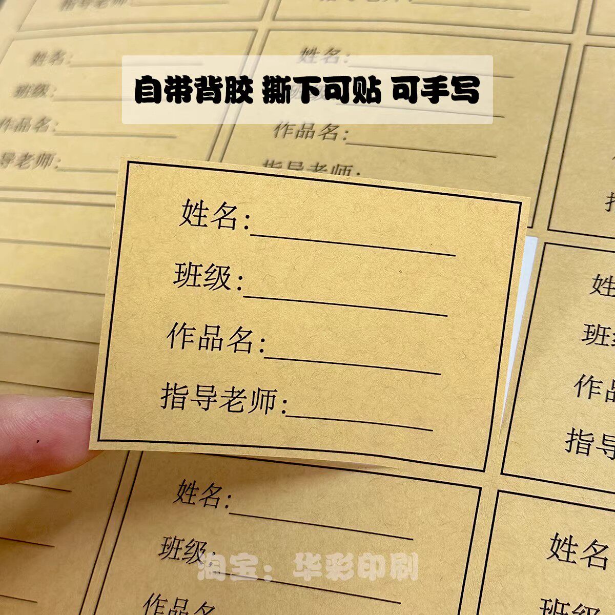 美术作品不干胶贴纸标签画室绘画班手写贴姓名少儿画展卡通贴D制