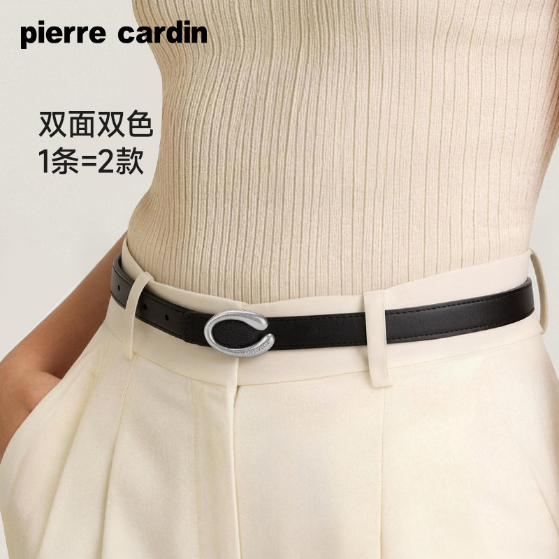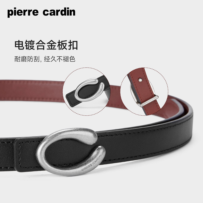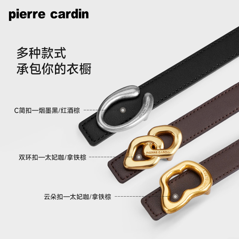 皮尔卡丹女士皮带韩版小众牛仔板扣真皮裤腰带复古设计感牛皮裤带