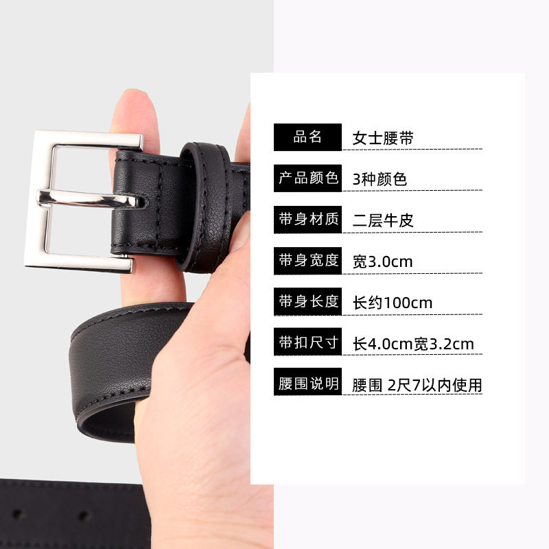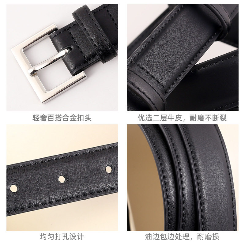 2025新款女士真皮腰带夏季黑色针扣百搭潮大码女装真皮腰带