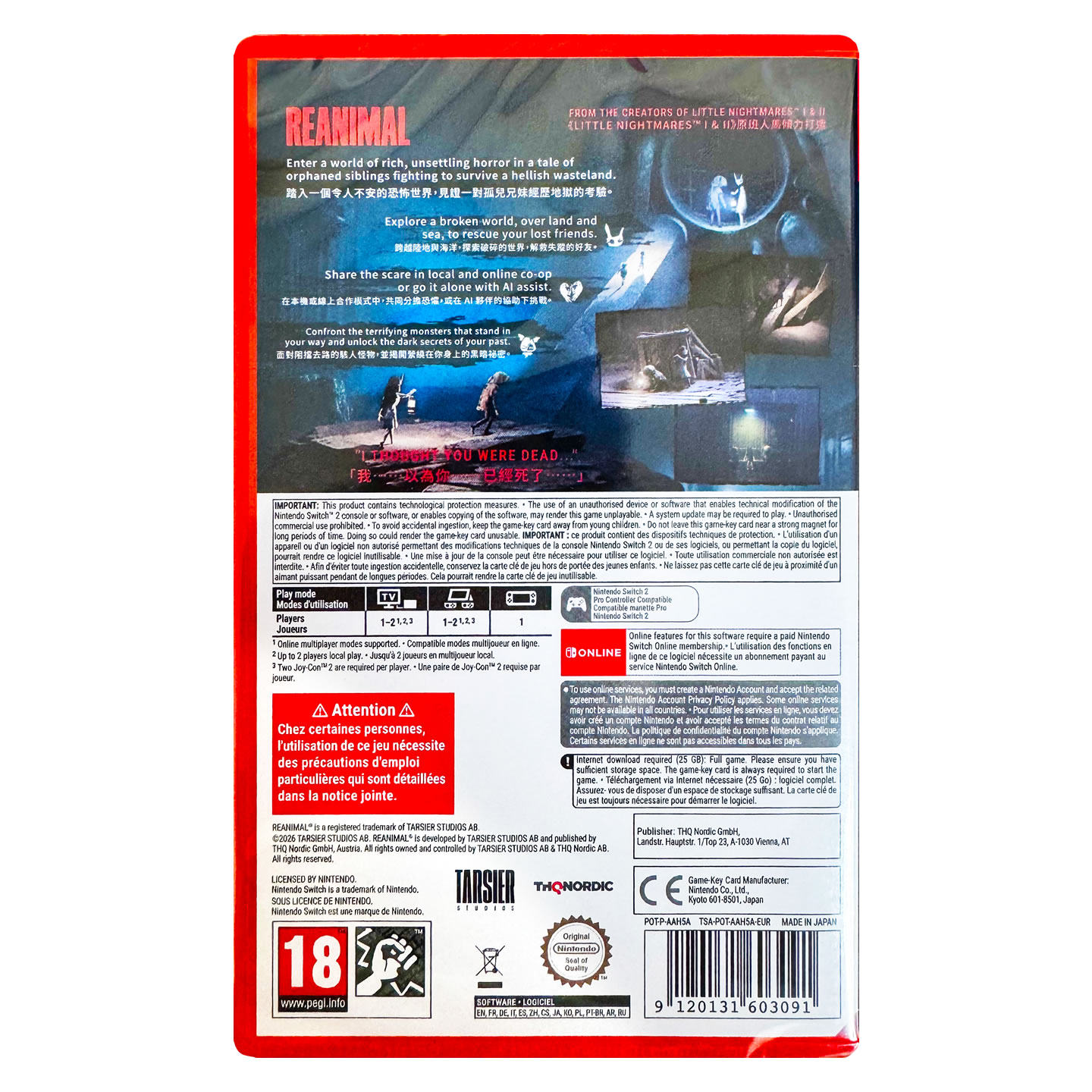 香港直邮 任天堂NS2游戏 欧版中文原封 生灵重塑 Reanimal Nintendo Switch 2 卡带 现货