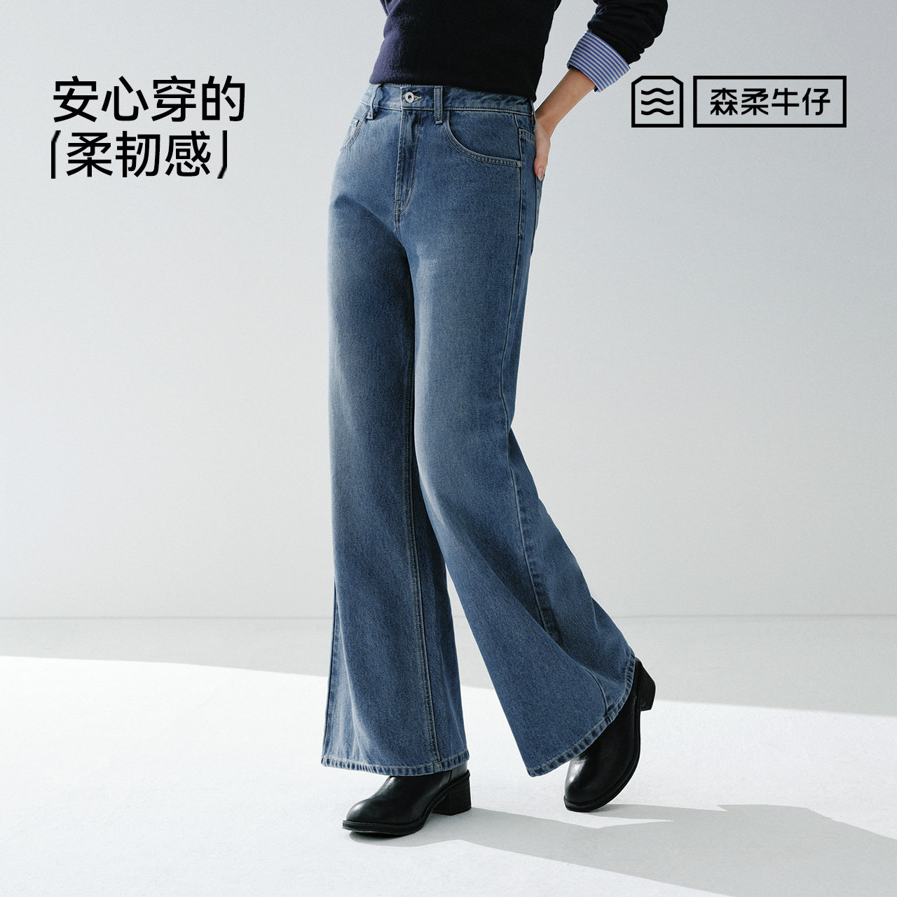森柔|森马牛仔裤女冬季加绒保暖宽松喇叭裤弹力长裤2025新款港风