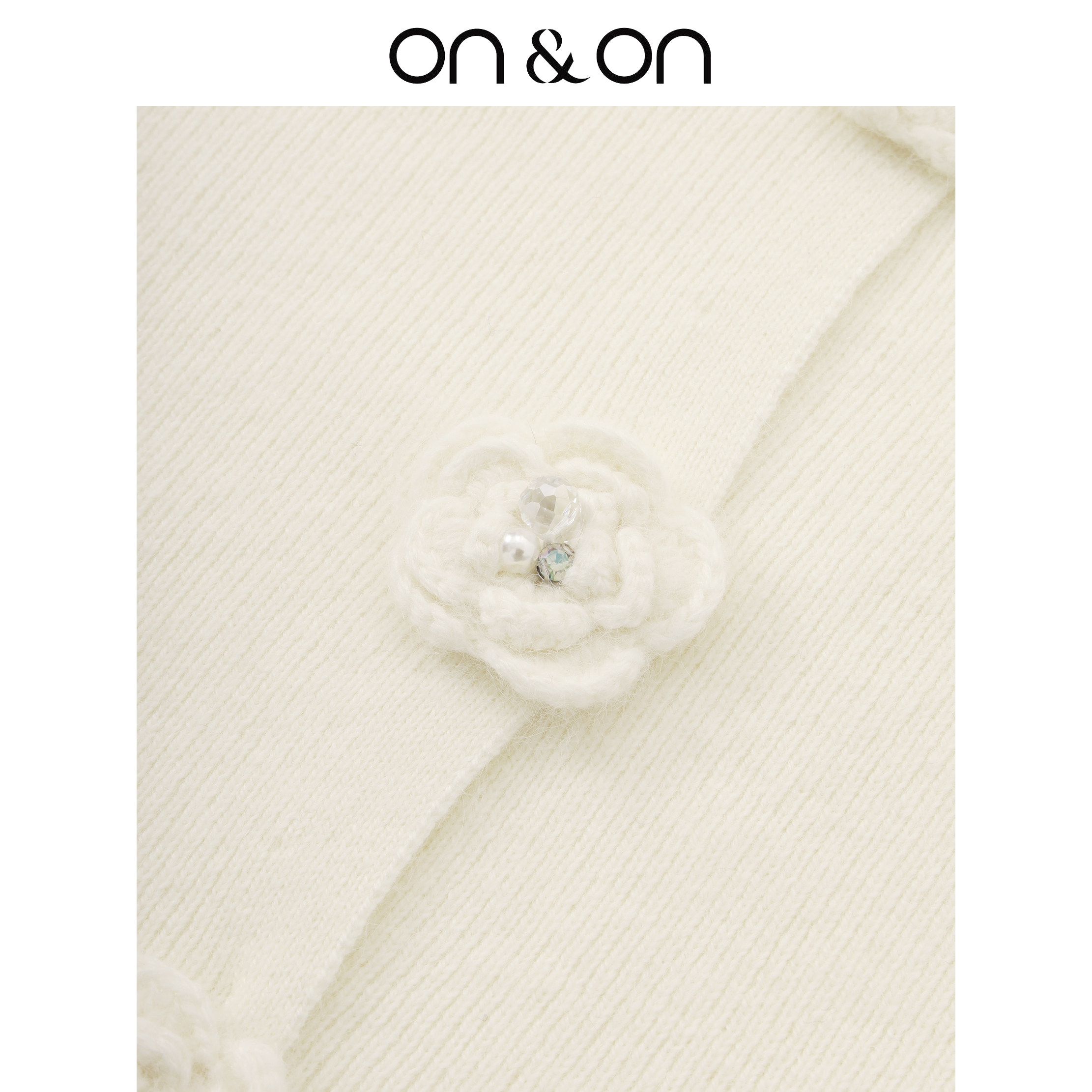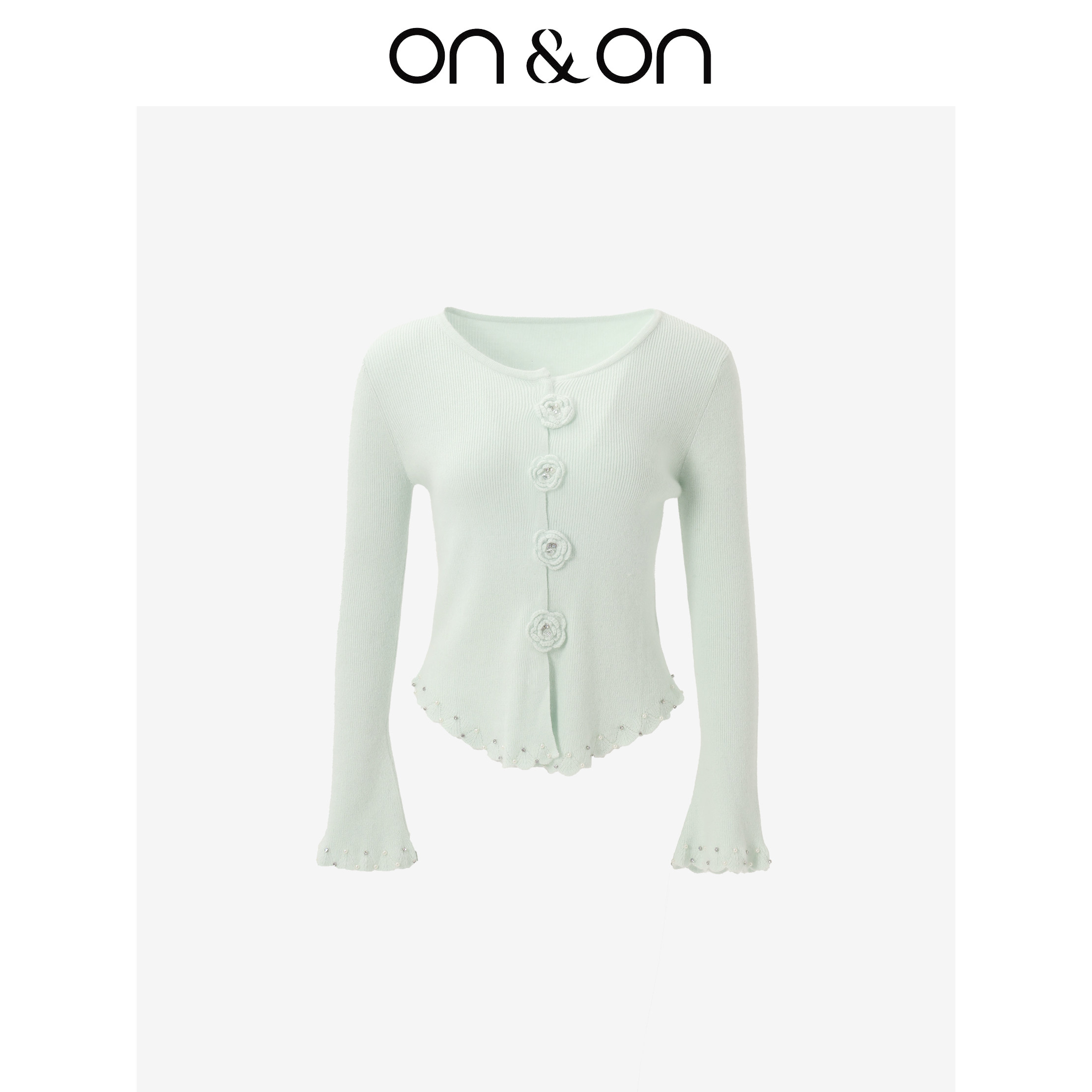 ON&ON/安乃安2026春季新款韩系V领甜美温柔风钉钻立体花朵针织衫