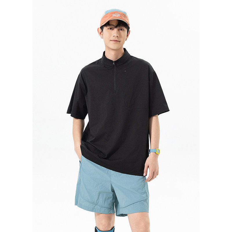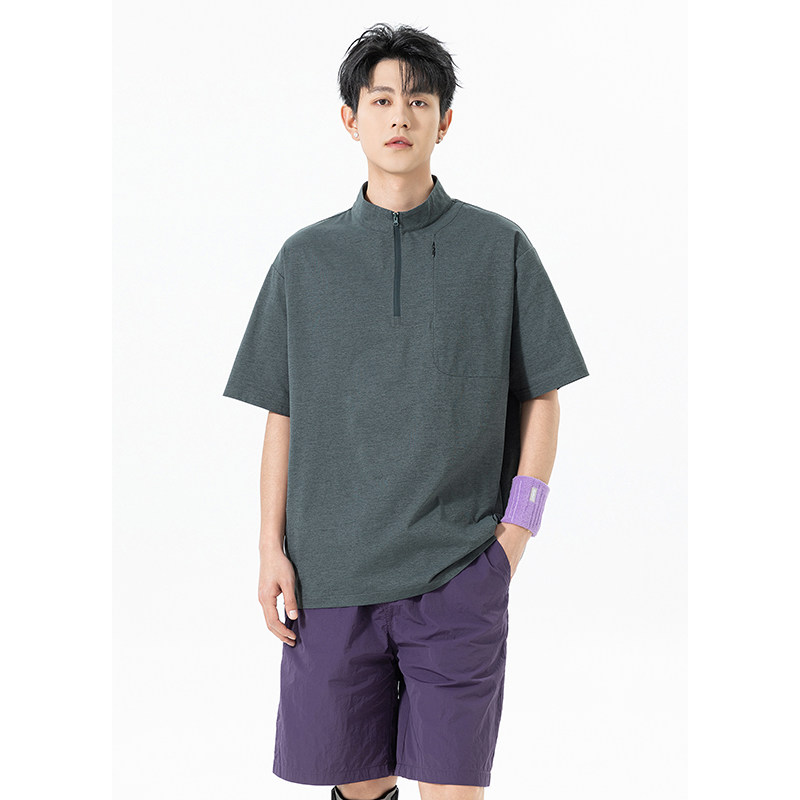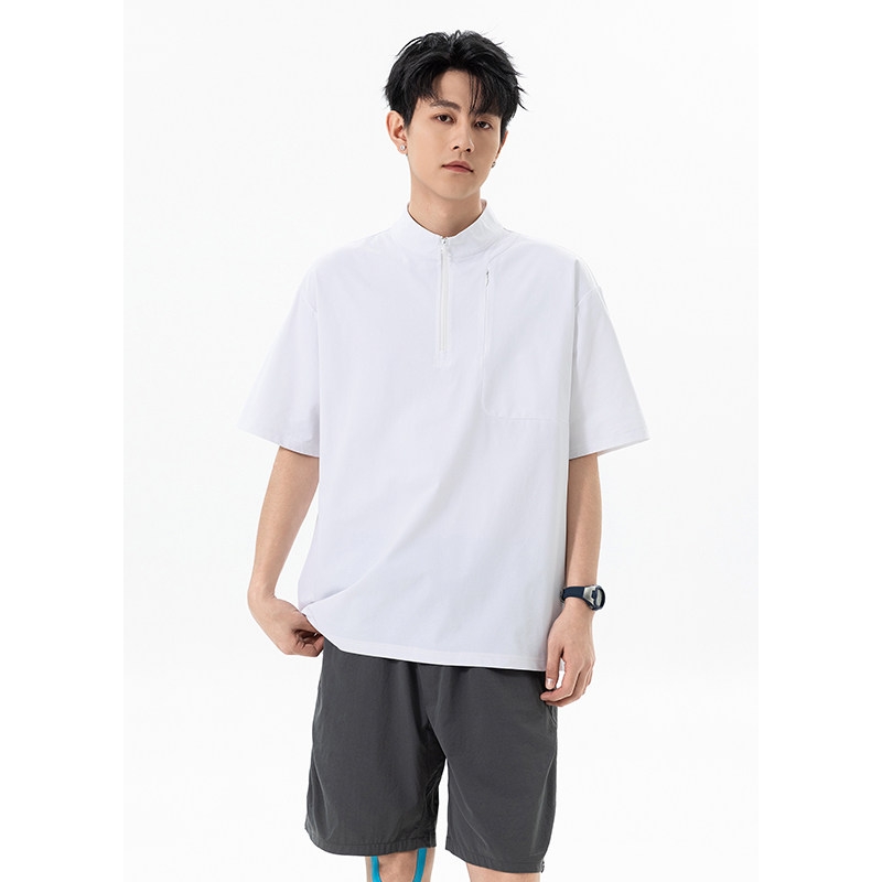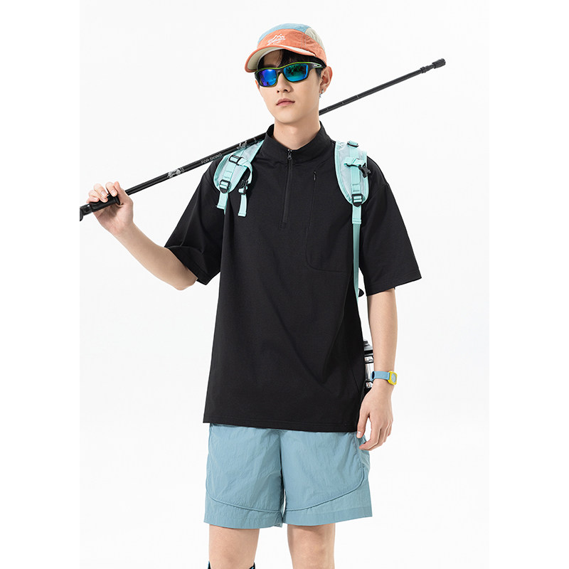 回力半拉链立领短袖t恤男士夏季薄款2026新款冰丝速干运动体恤衫