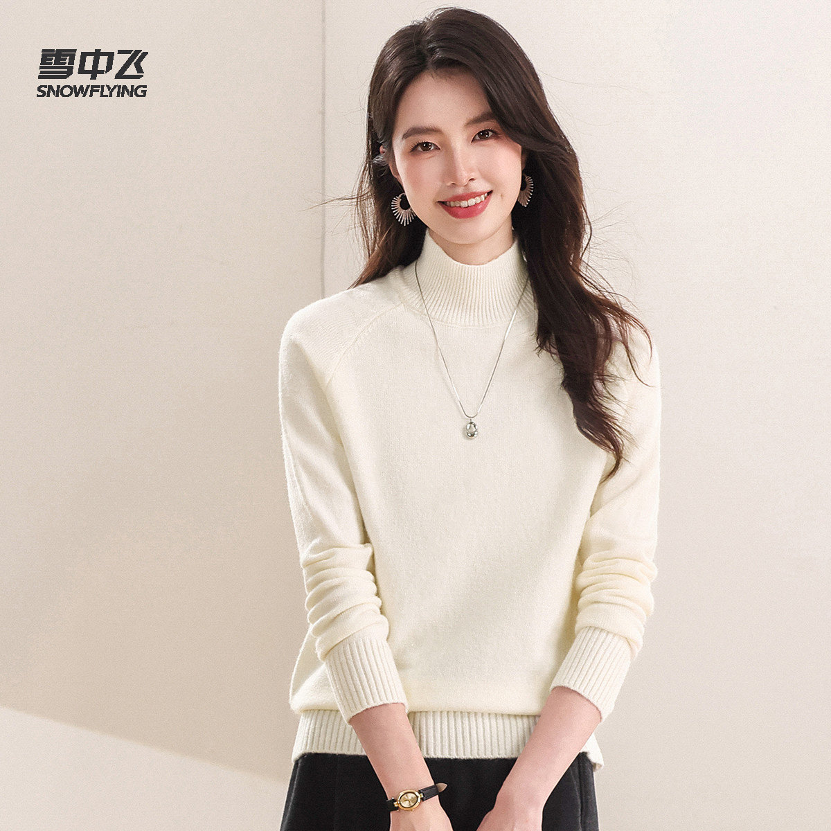 马年内搭女装含绵羊毛毛衣女纯色百搭针织衫半高领柔软舒适套头衫