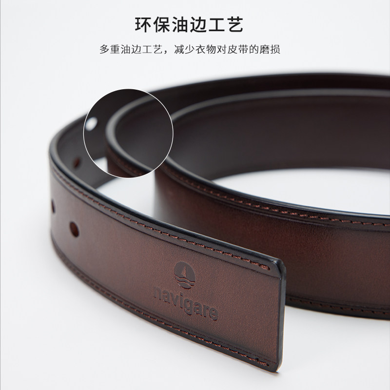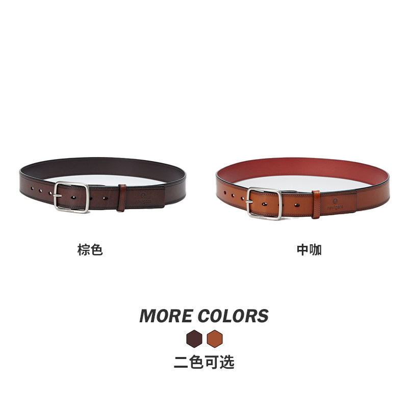 Navigare意大利小帆船休闲棕色牛皮革腰带商务合金针扣皮带男