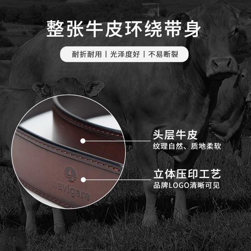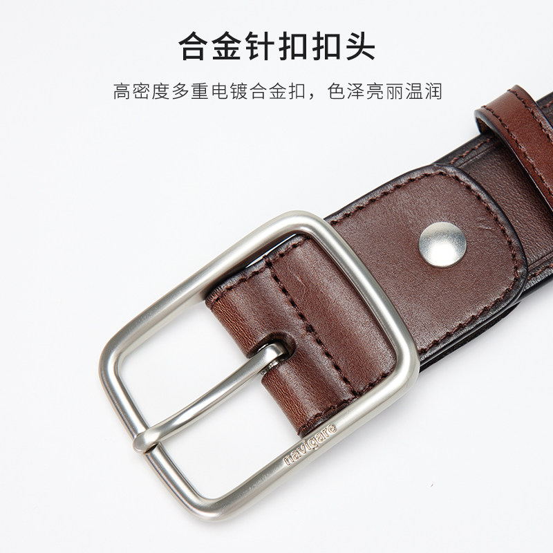 纯牛皮皮带男真皮休闲裤带男牛皮带年轻人针扣牛仔中年腰带男青年