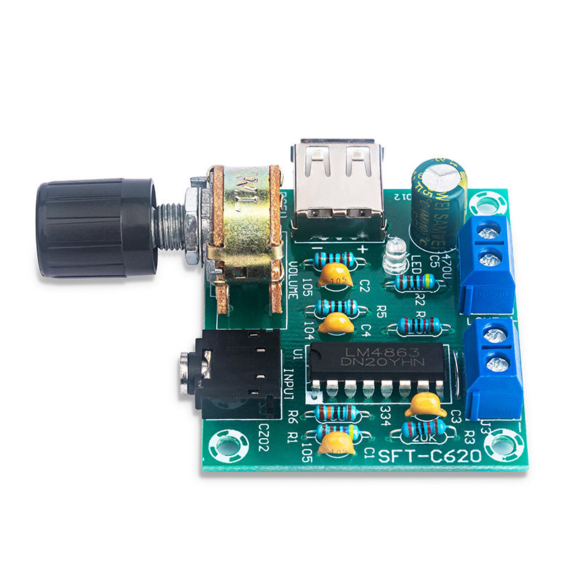 AB类大推力LM4863功放板 2*5W 迷你D类 数字功放模块 USB供电3~5V