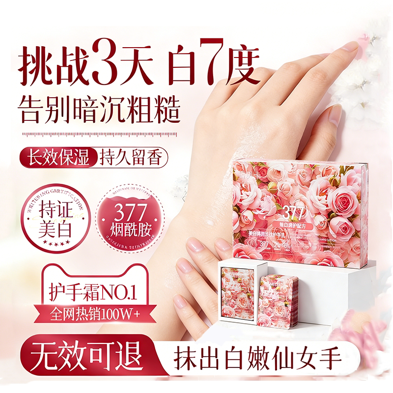 377美白护手霜保湿嫩白去手纹滋润补水防干裂女士礼盒装送人次抛