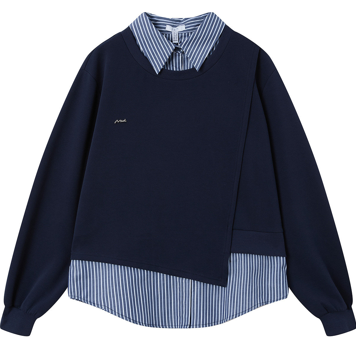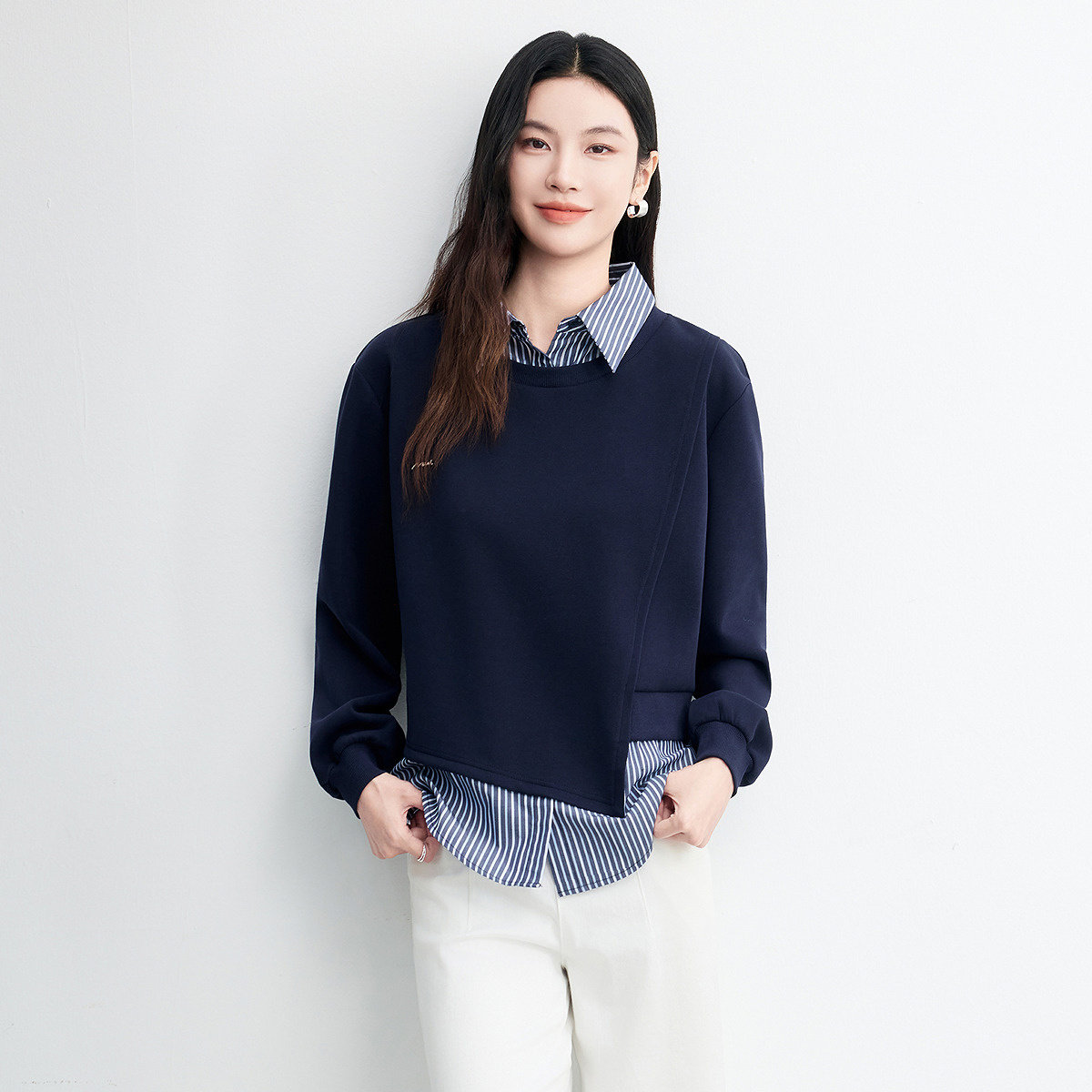 FINITY菲妮迪假两件雪纺衫2026春新款不规则设计拼接长袖上衣女装