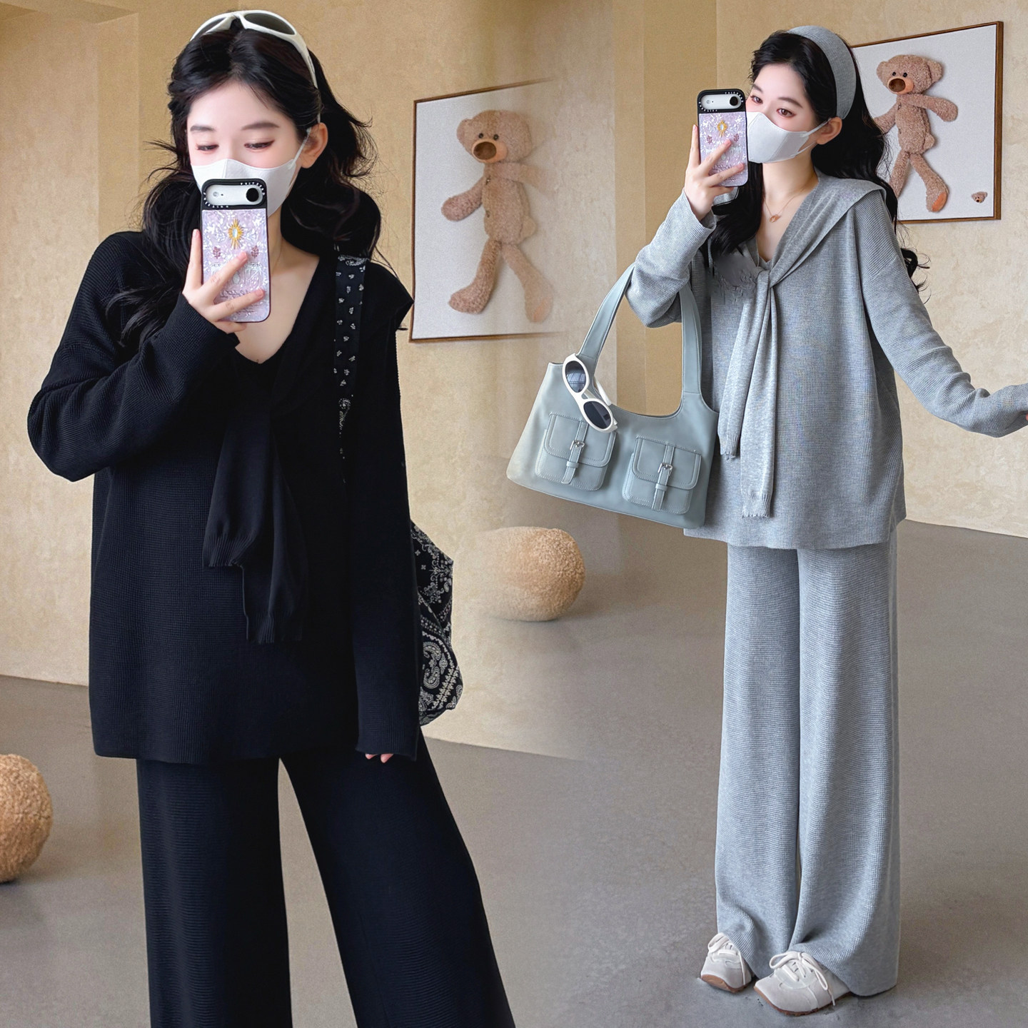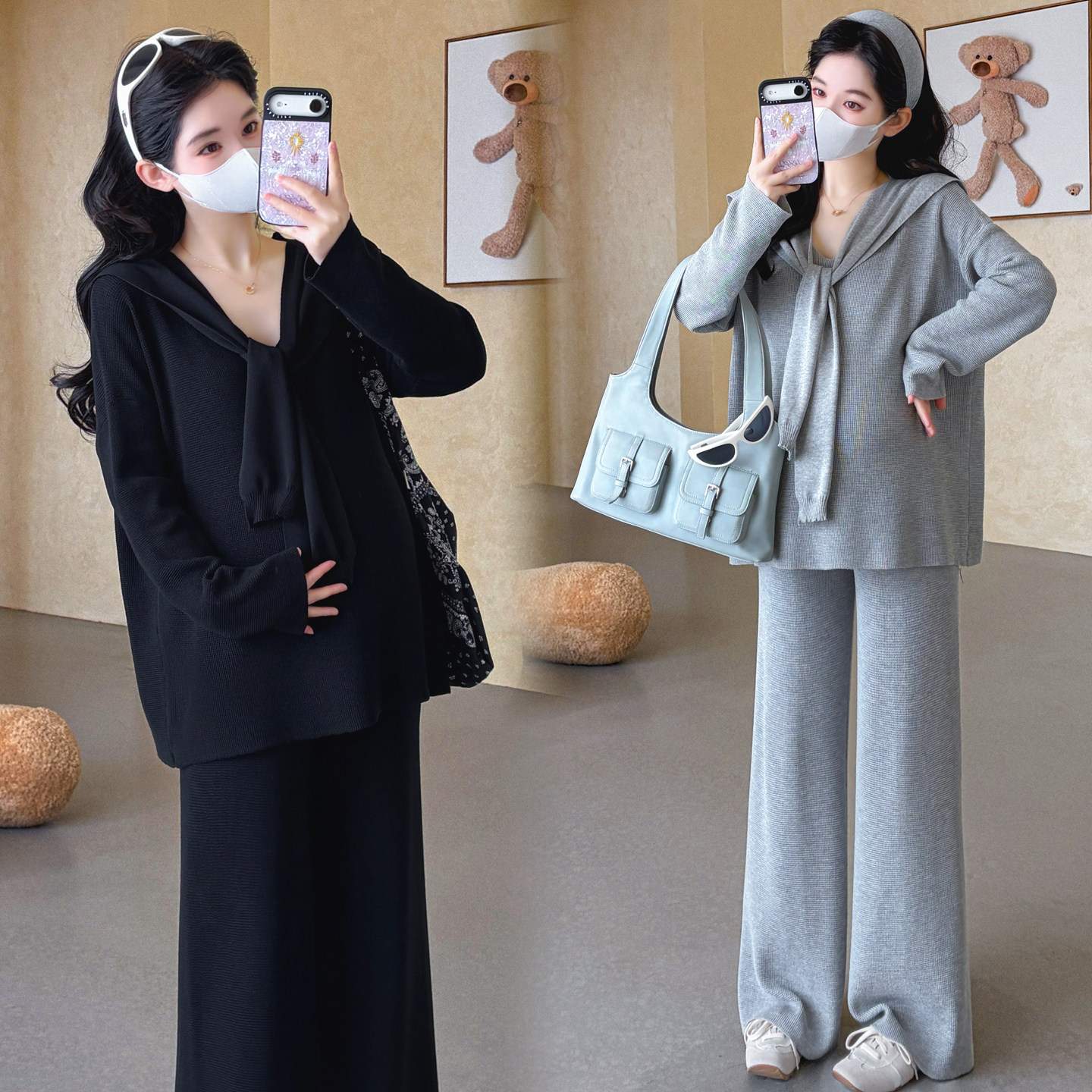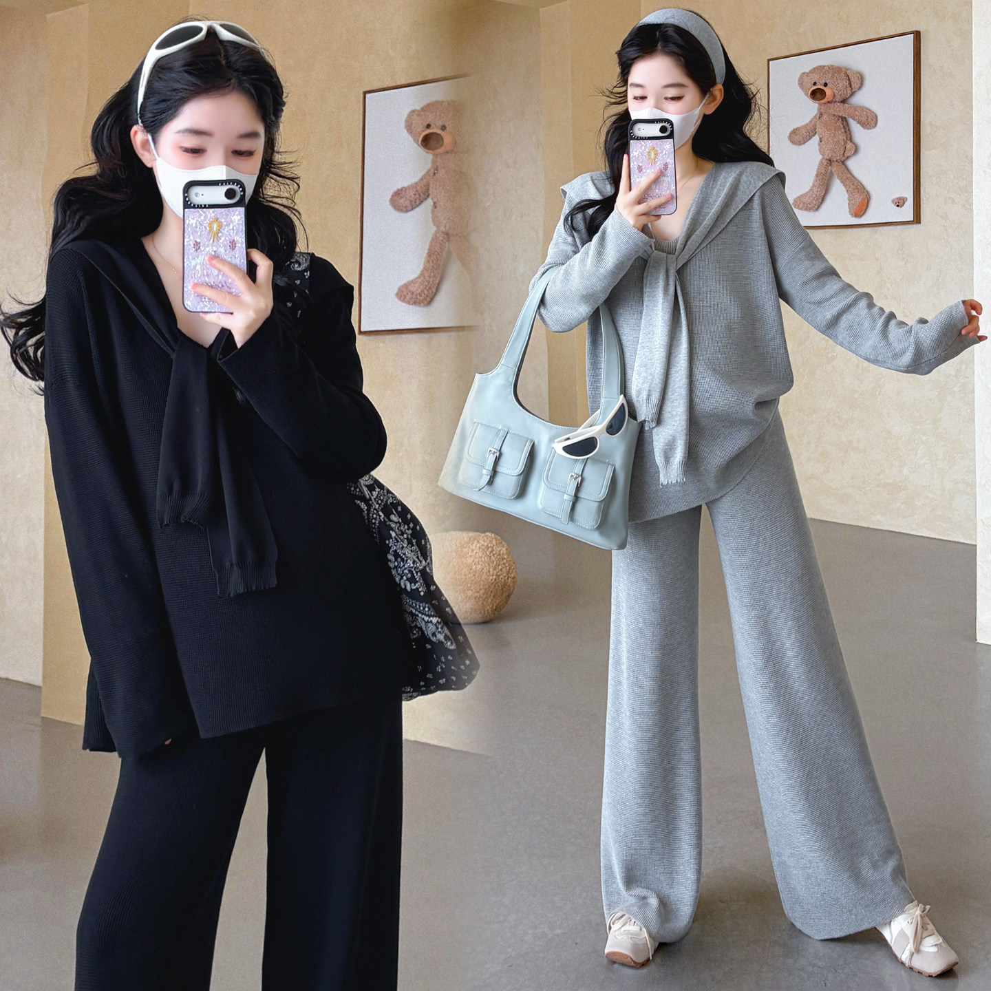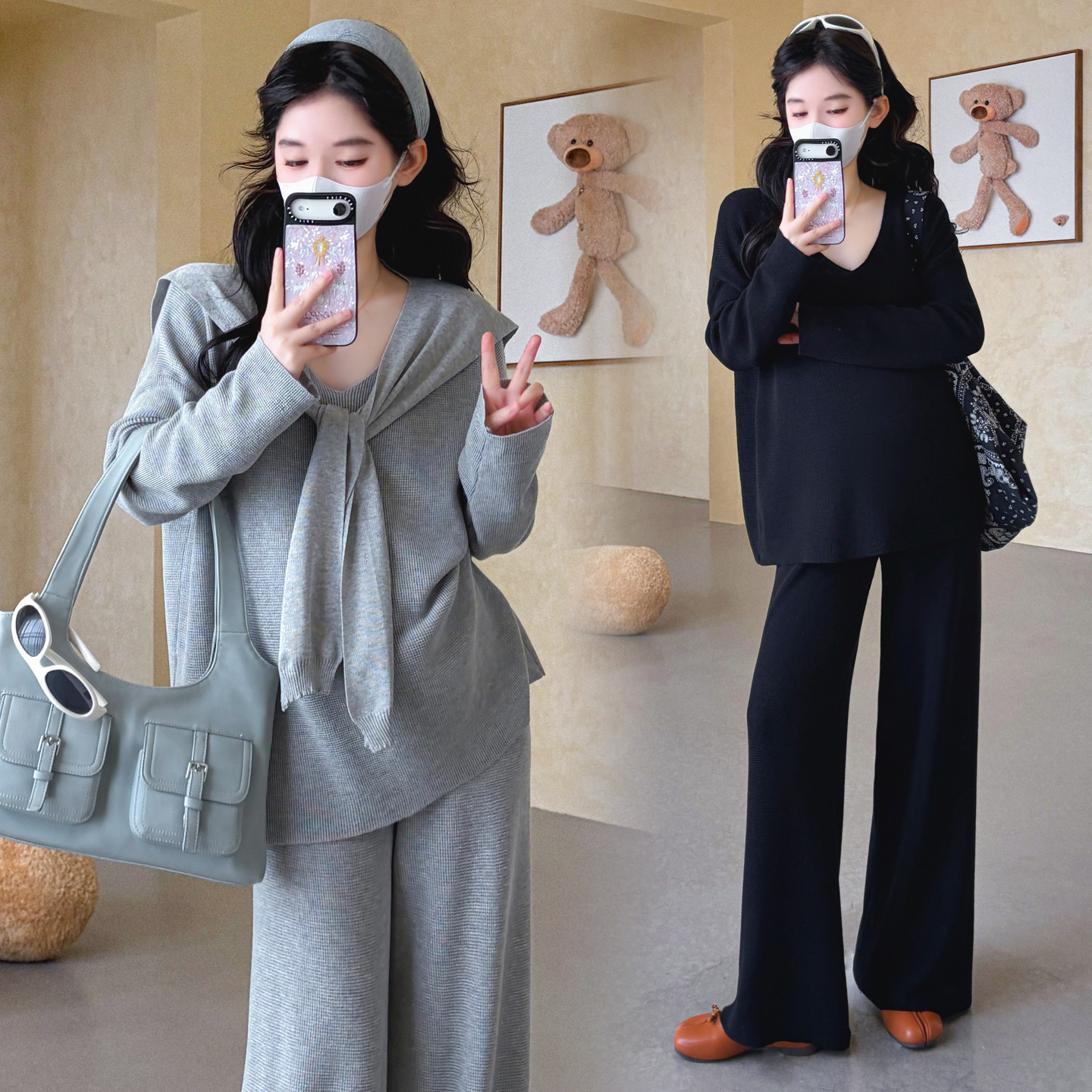 婧麒孕妇套装早春洋气遮孕肚长袖宽松显瘦遮孕肚高品质