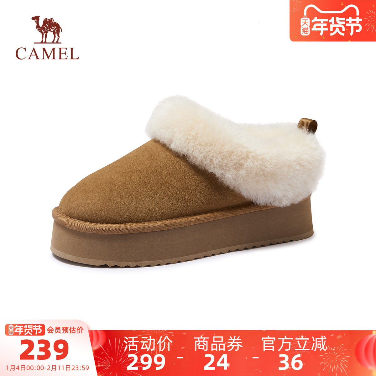骆驼女鞋2025冬季新款保暖雪地靴女款加绒毛毛鞋厚底加厚东北棉鞋