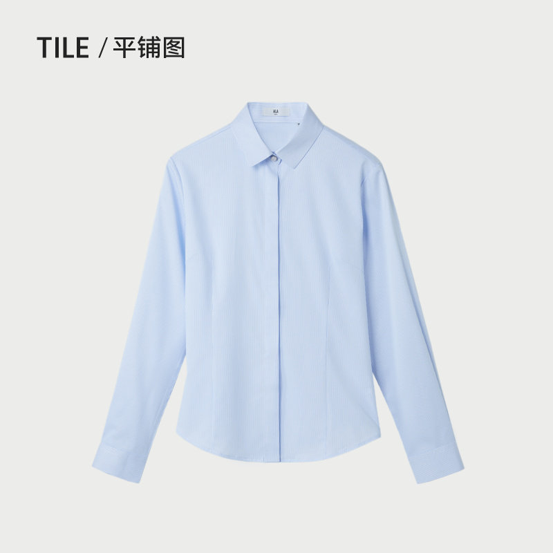 HLA/海澜之家商务休闲长袖条纹女士正装衬衫春夏新款微弹白色衬衣