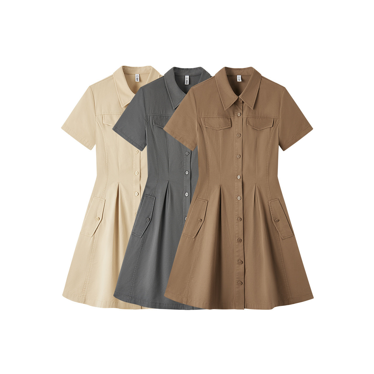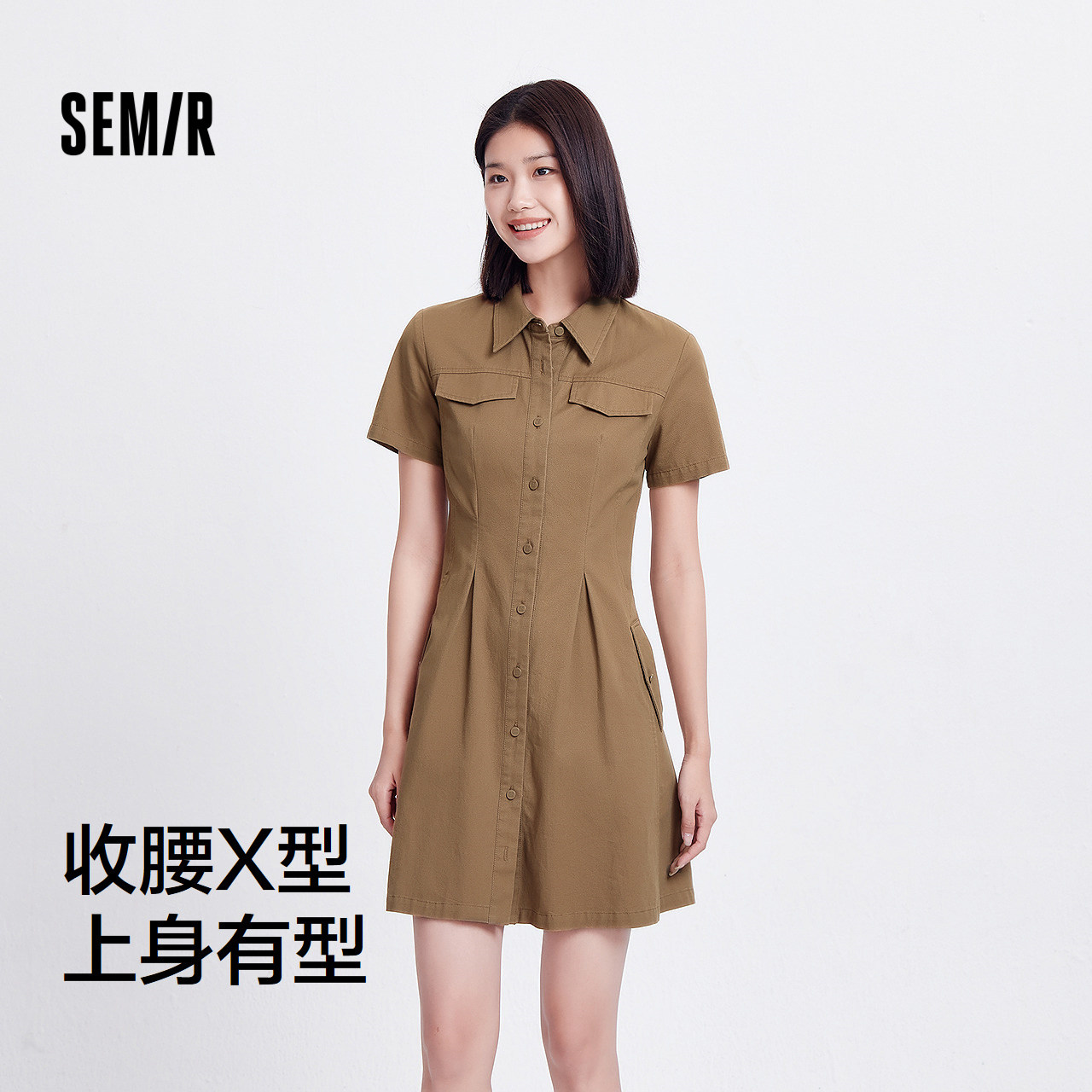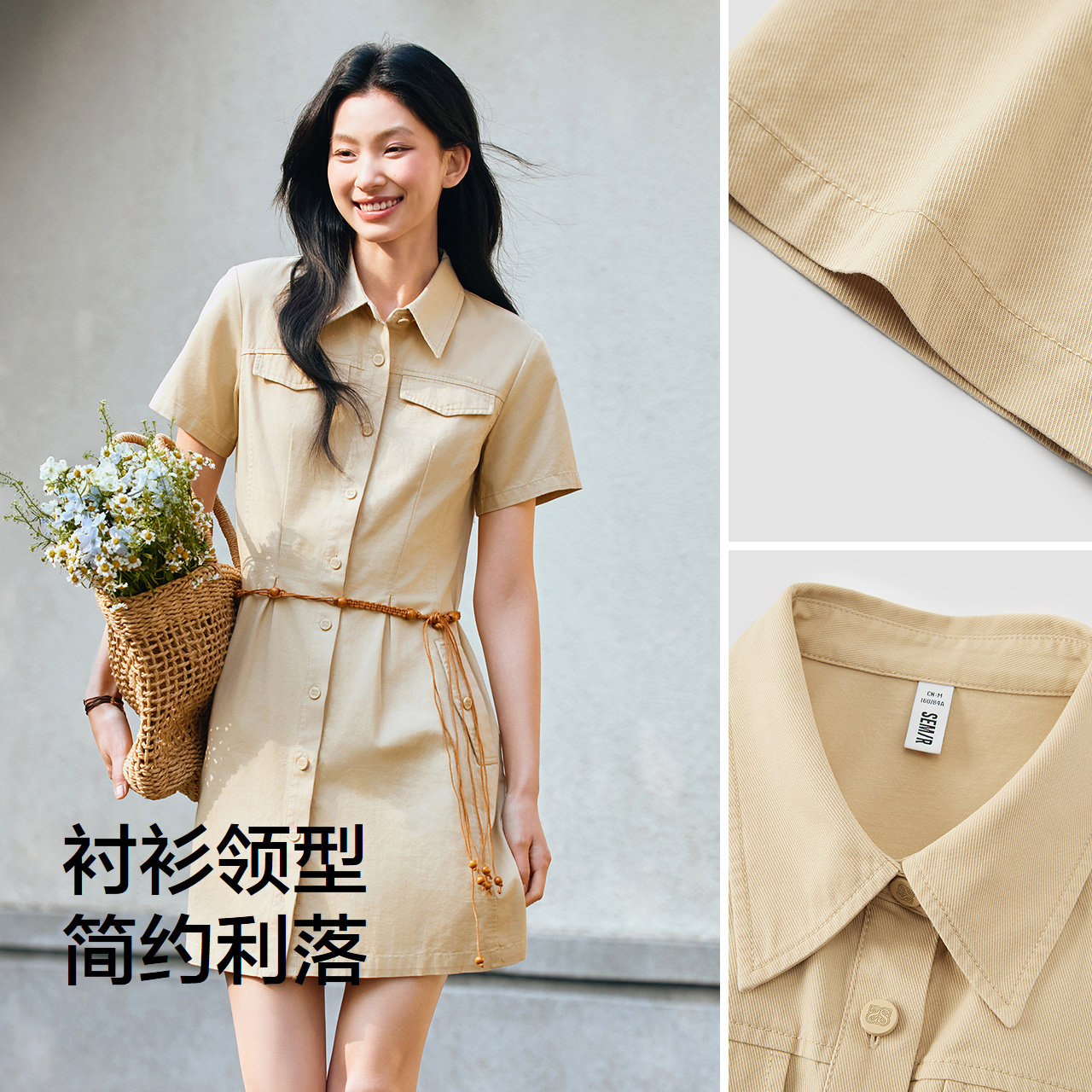 森马连衣裙女收腰衬衫裙复古休闲潮流百搭夏季美拉德纯色短裙气质
