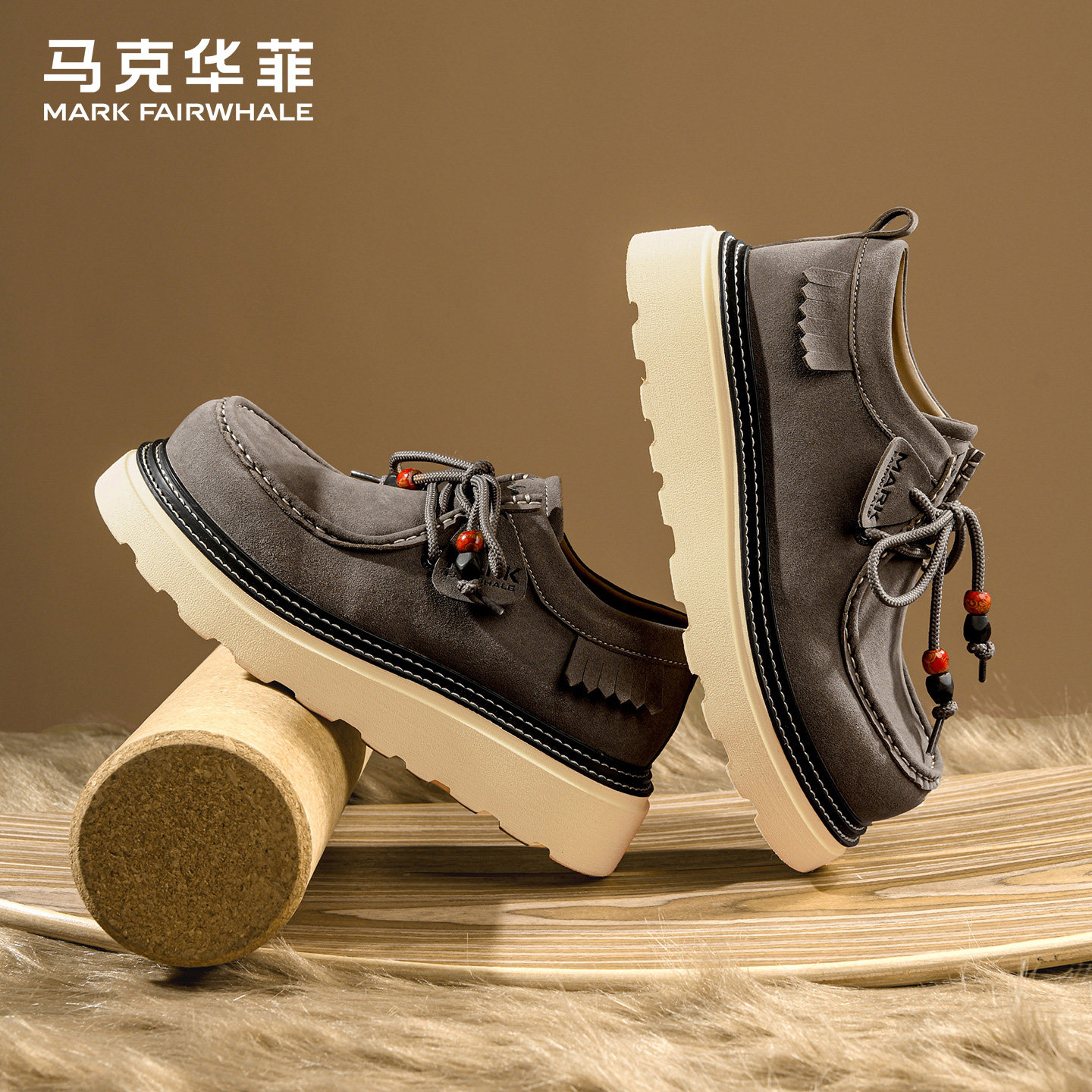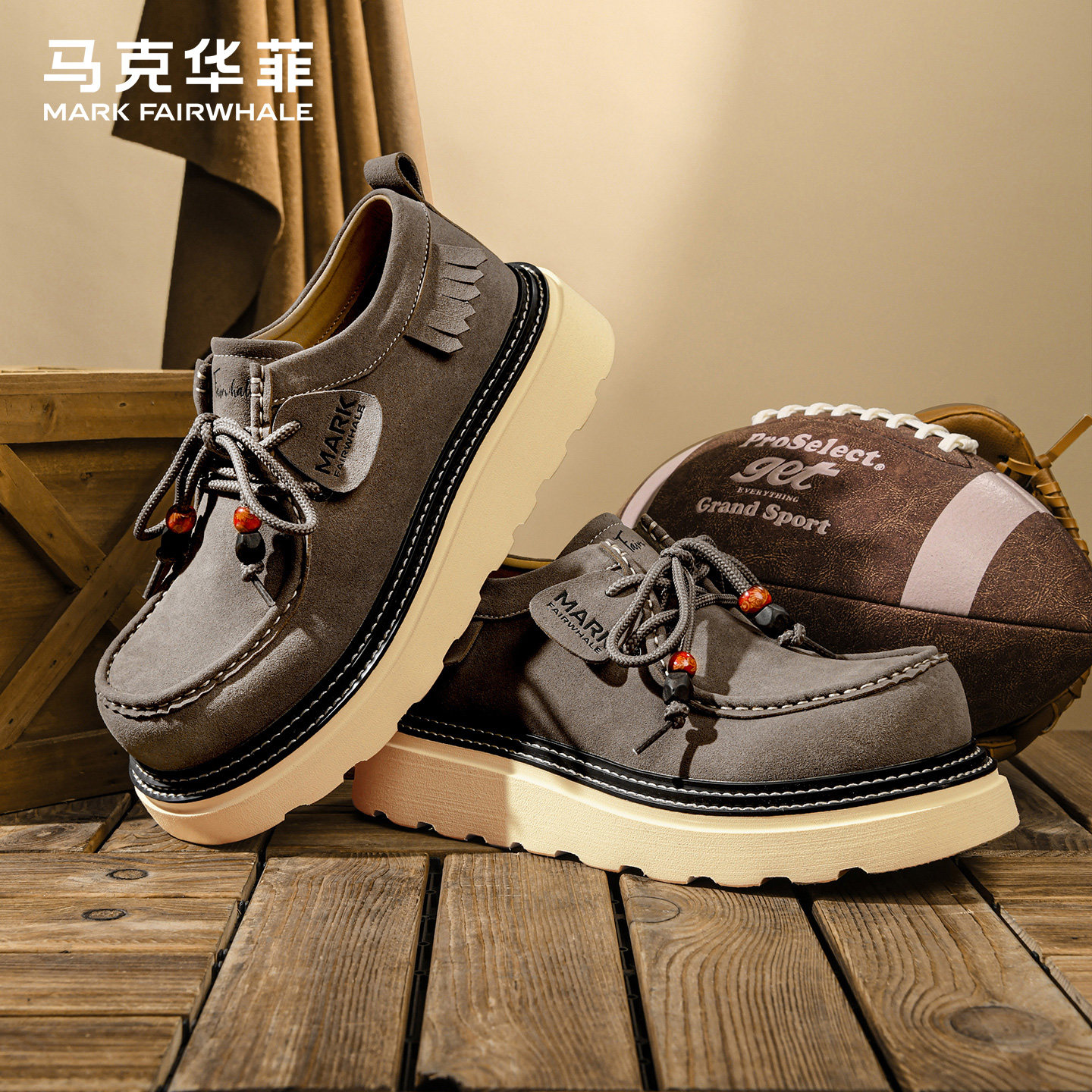 马克华菲复古男鞋冬季男士厚底增高袋鼠鞋男款潮流大头鞋休闲鞋子