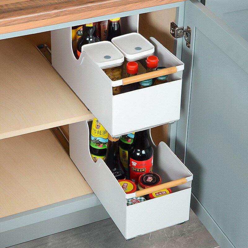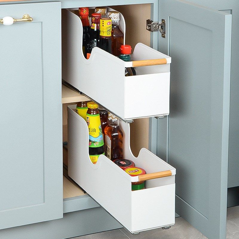 热销厨房调味料置物架抽拉式极窄拉篮橱柜内置单层抽屉夹缝超深柜