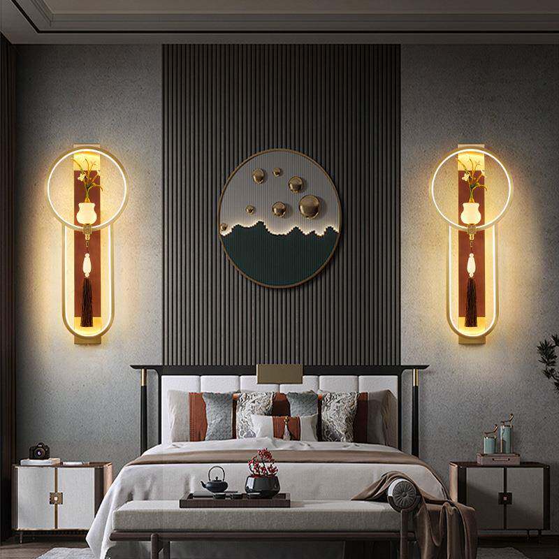 全铜实木新中式壁灯长条客厅主卧现代卧室床头灯电视背景墙灯2132