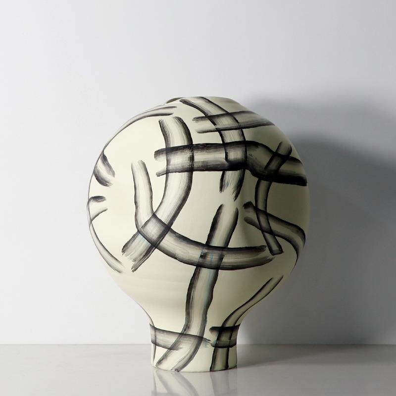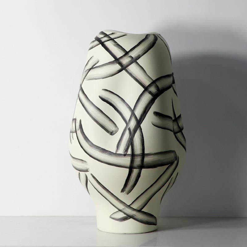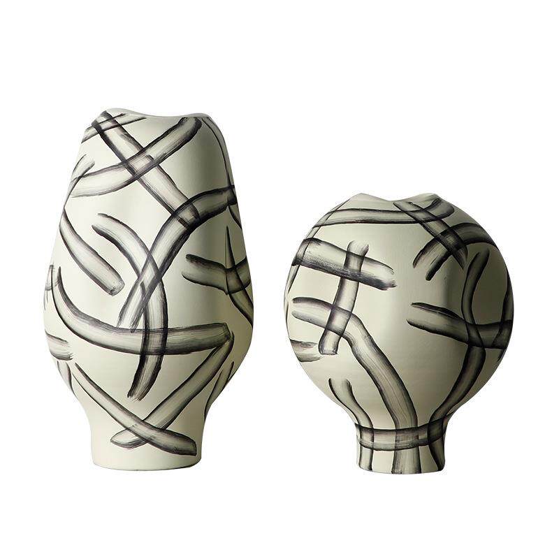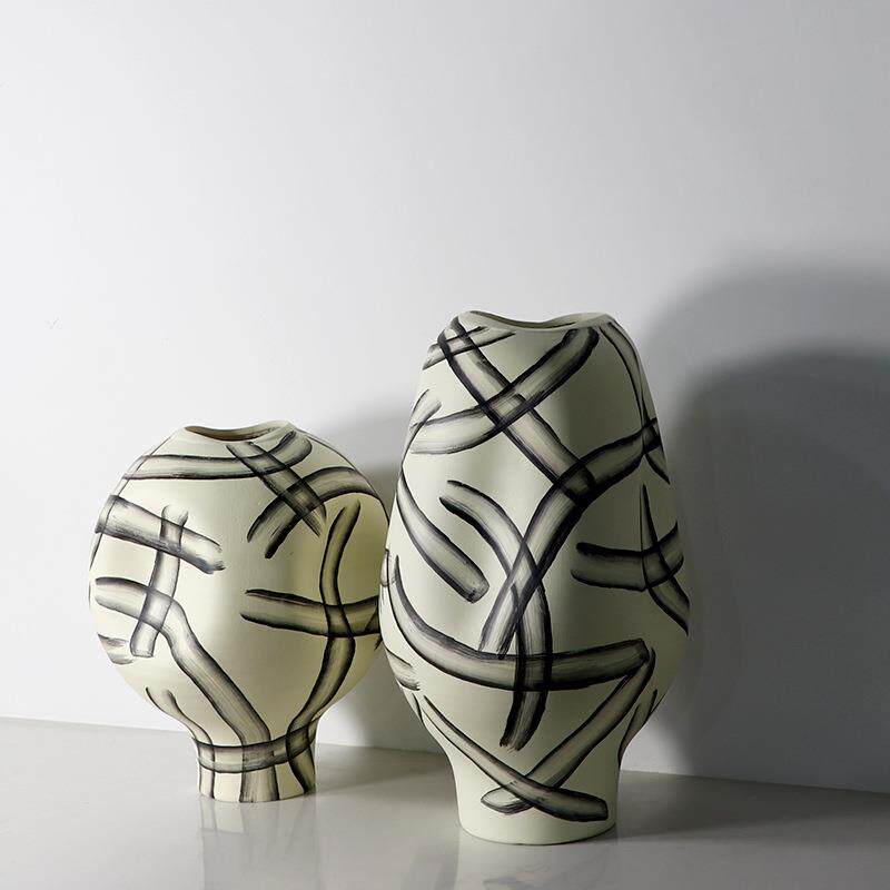 新中式手绘水墨条纹花瓶摆件样板间书房插花器酒店展示柜软装饰品