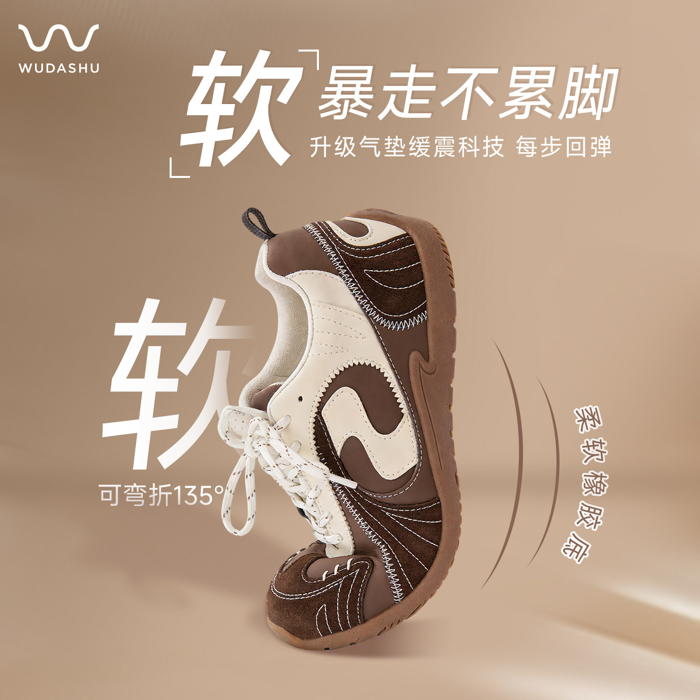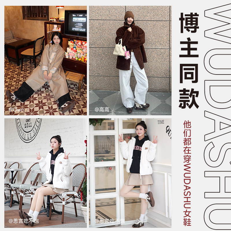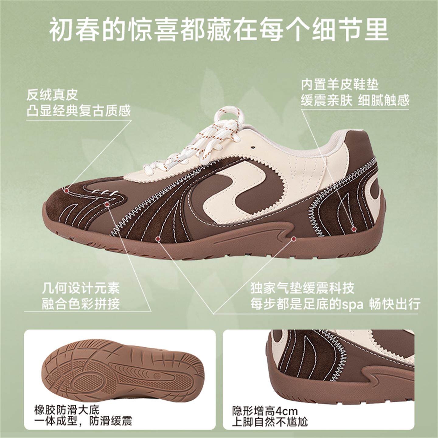吴大叔泡芙德训鞋女款2026新款棕色经典复古款超级好看百搭内增高